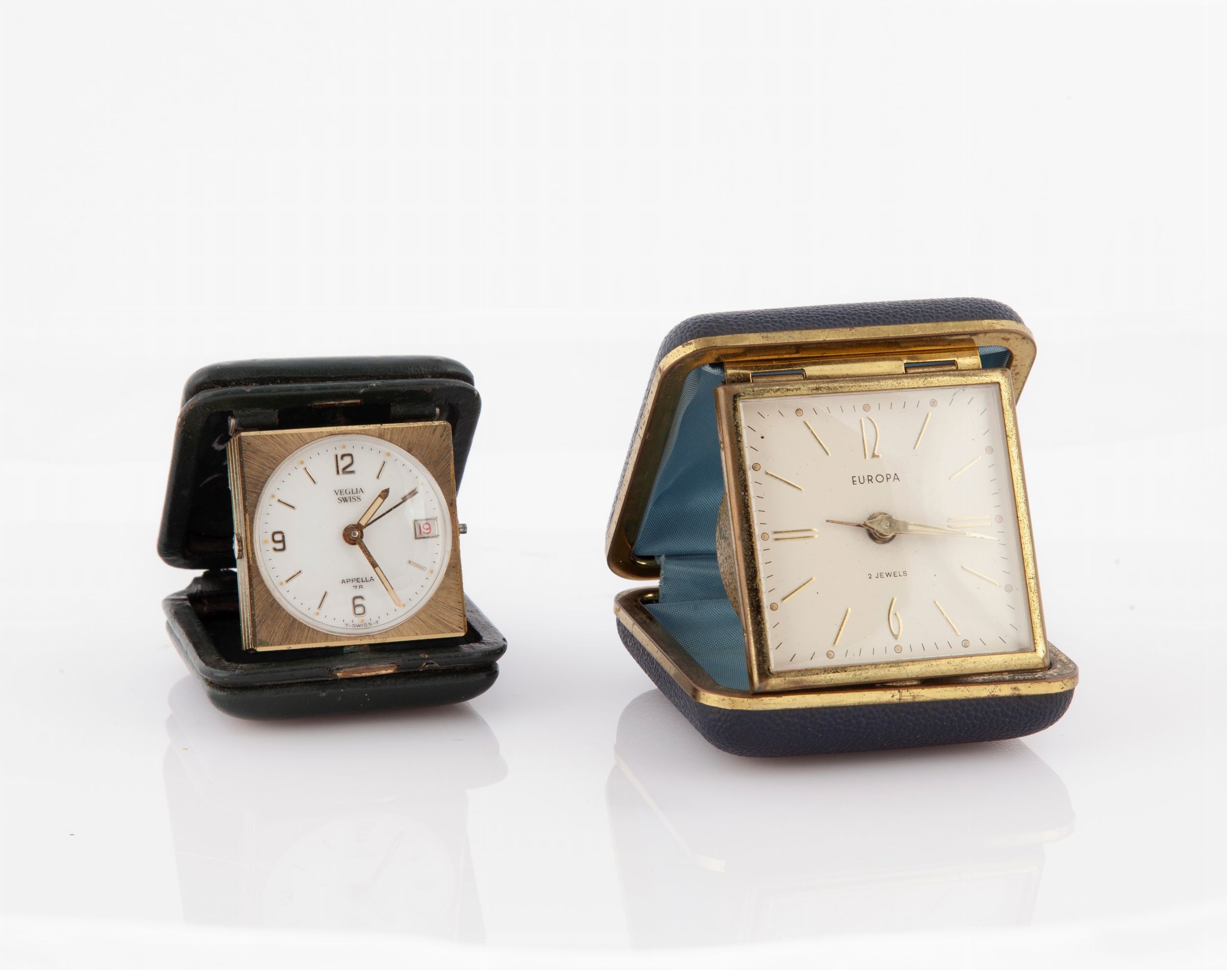 2 sveglie da tavolo a carica manuale: - Veglia per Appella con datario in ottone [..]