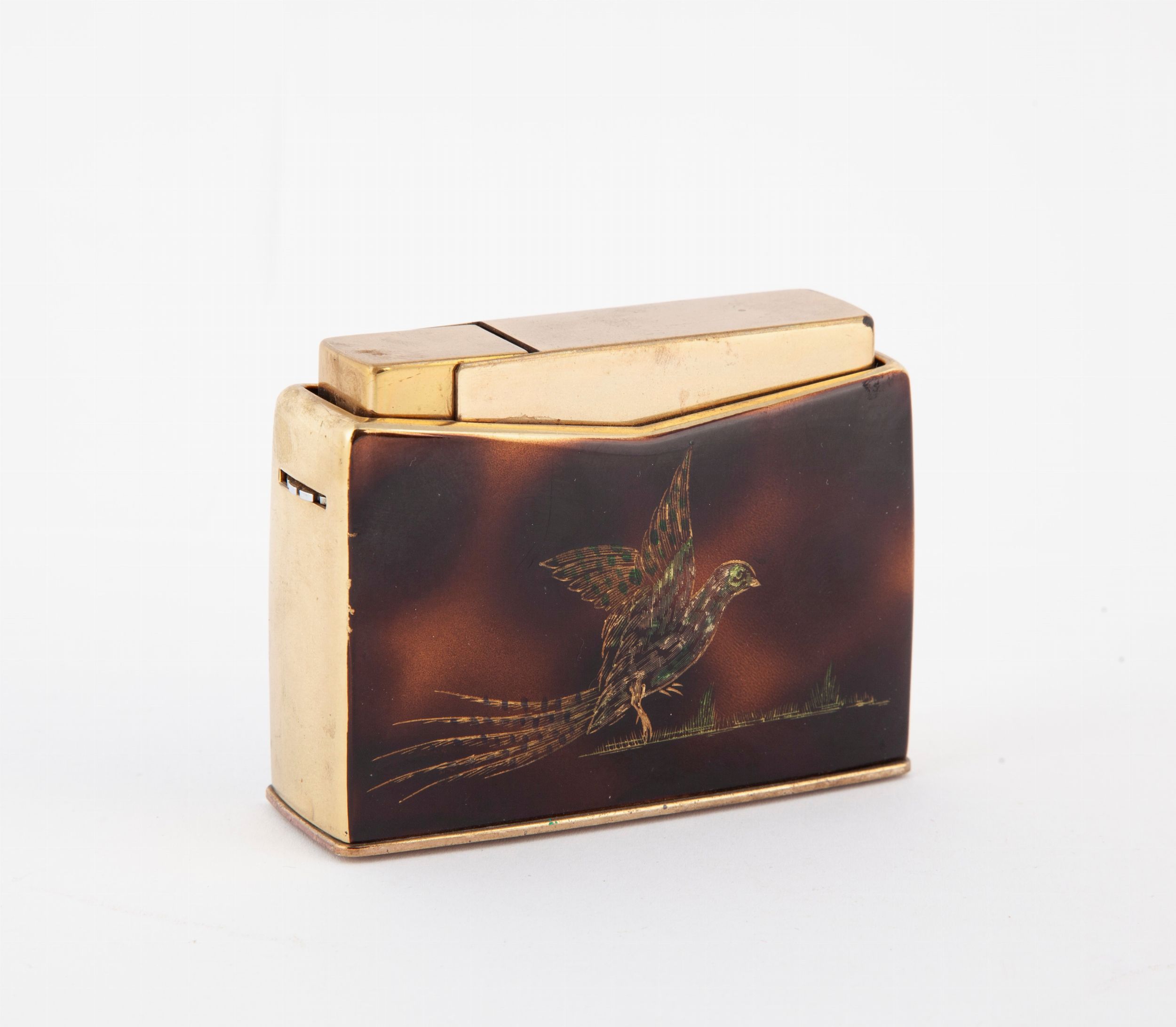 Consule Crown - Accendino da tavolo in ottone e plastica con volatile inciso