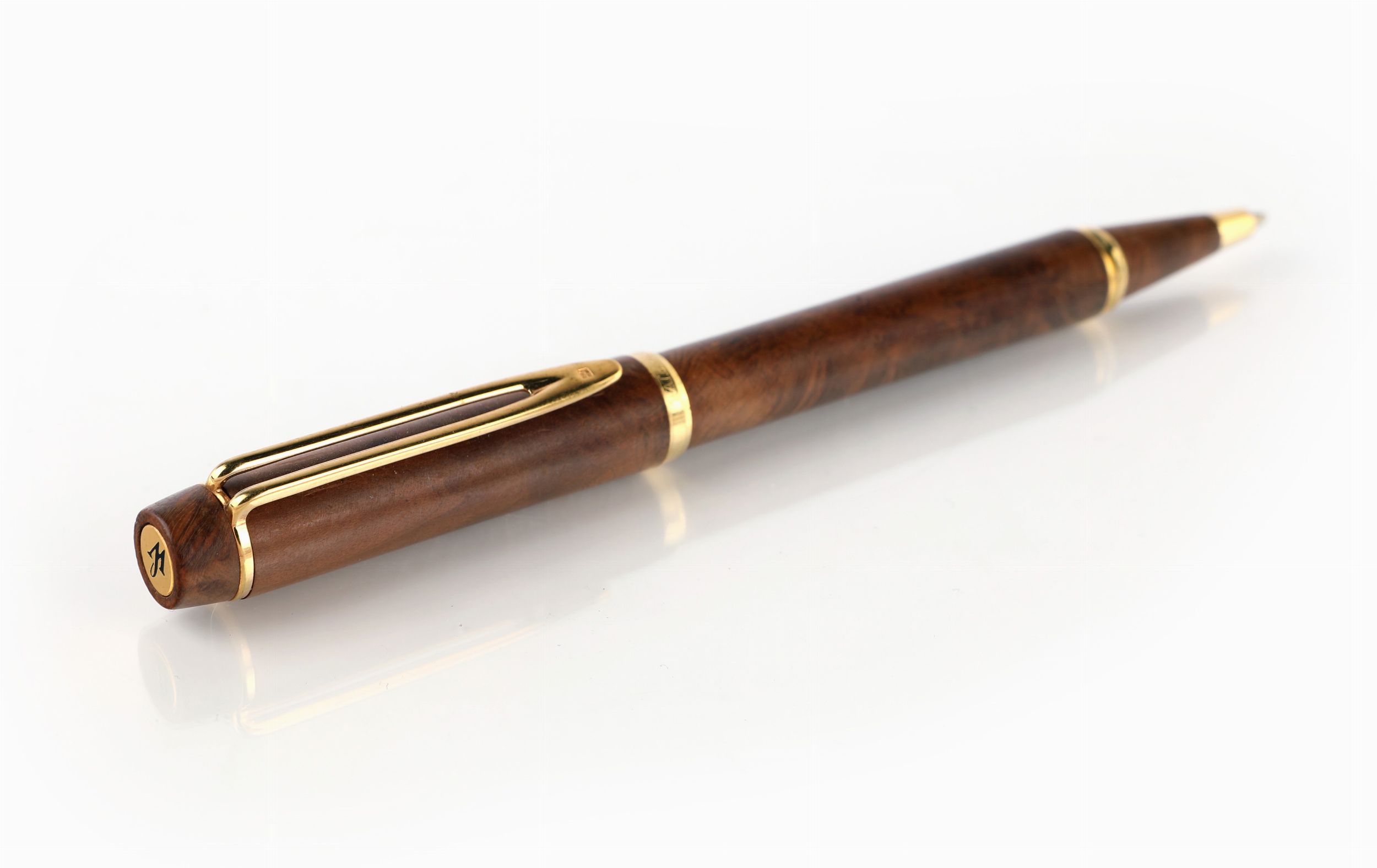 Waterman - Penna a sfera in resina effetto legno con particolari in metallo dora [..]