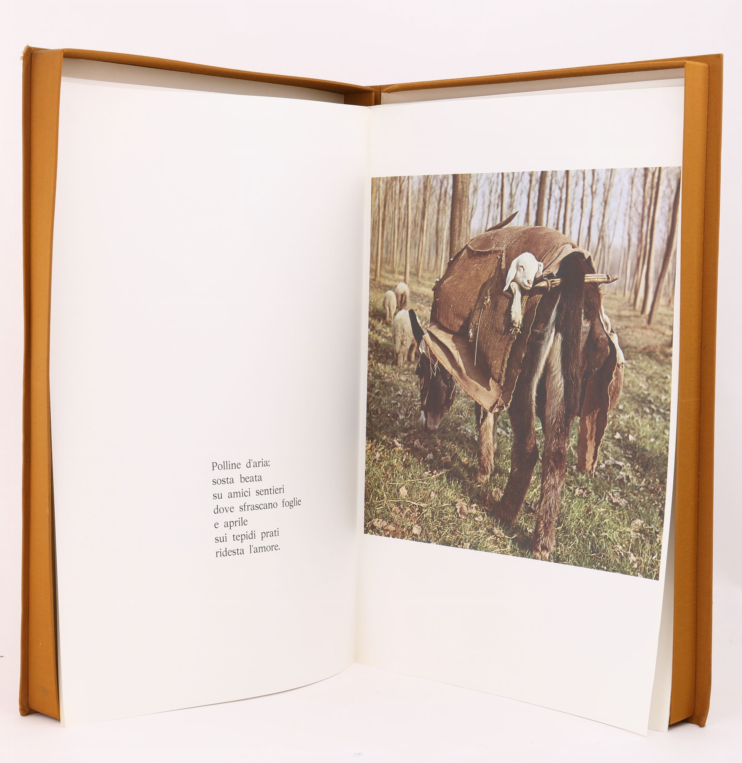 cm 50x35 Sandro Maria Rosso, Biella 1978 Tiratura limitata a 500 esemplari numerati, ns esemplare n.86. 1 foglio doppio con frontespizio e presentazione di Francesco Rosso e 42 fogli liberi doppi con breve testo e grande illustrazione fotografica a colori. Entro cofanetto in tela originale con titoli a stampa.