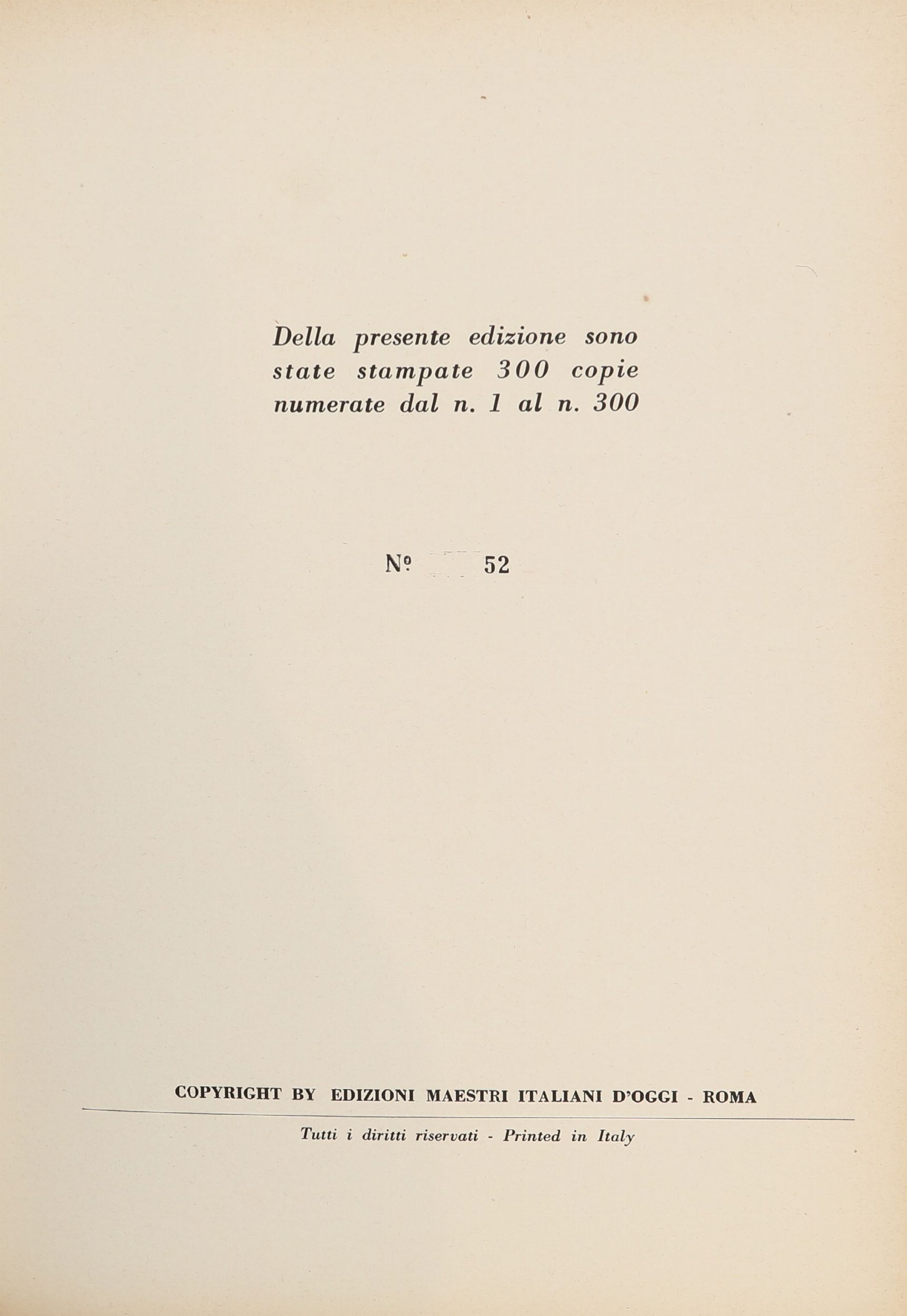 Edizioni Maestri d'Oggi, Roma 1957 Tiratura limitata di 300 esemplari, ns copia n. 52