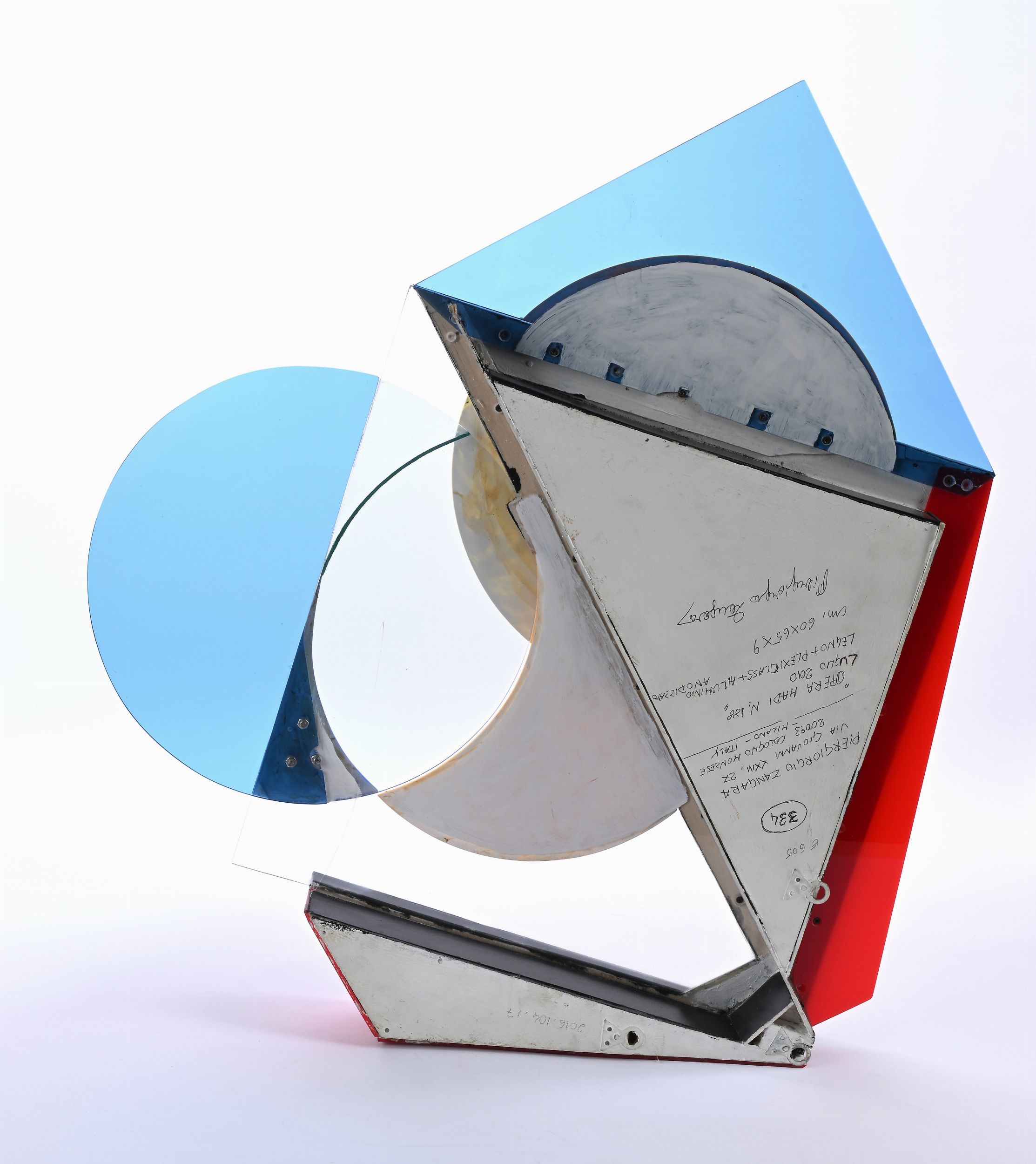 Scultura in legno, plexiglass e alluminio anodizzato, cm 65x60x9