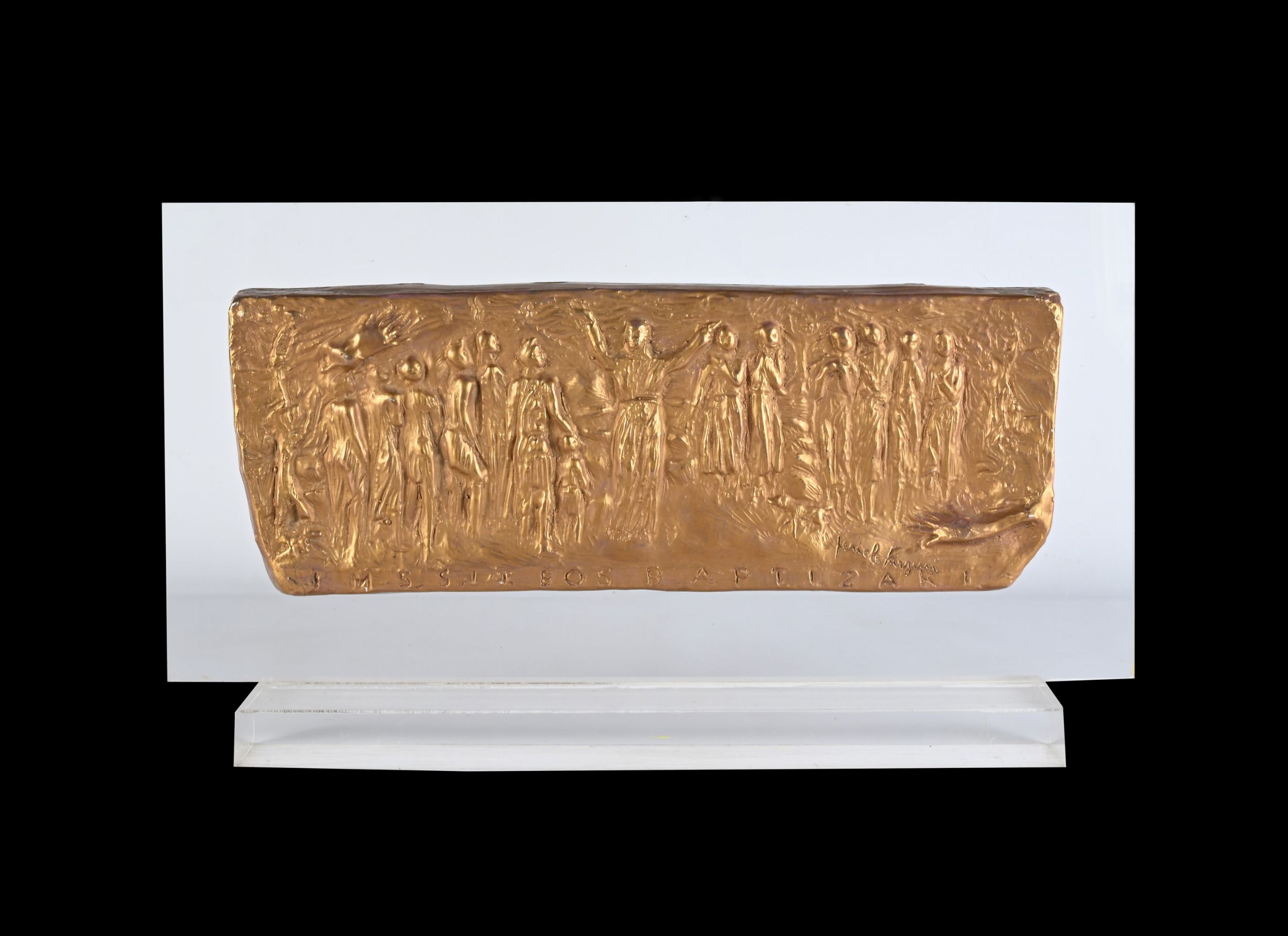 PLACCA DI GESSO E ORO ZECCHINO MONTATO SU PLEXSIGLAS FIRMATO, ITAIA, PRIMA META' [..]