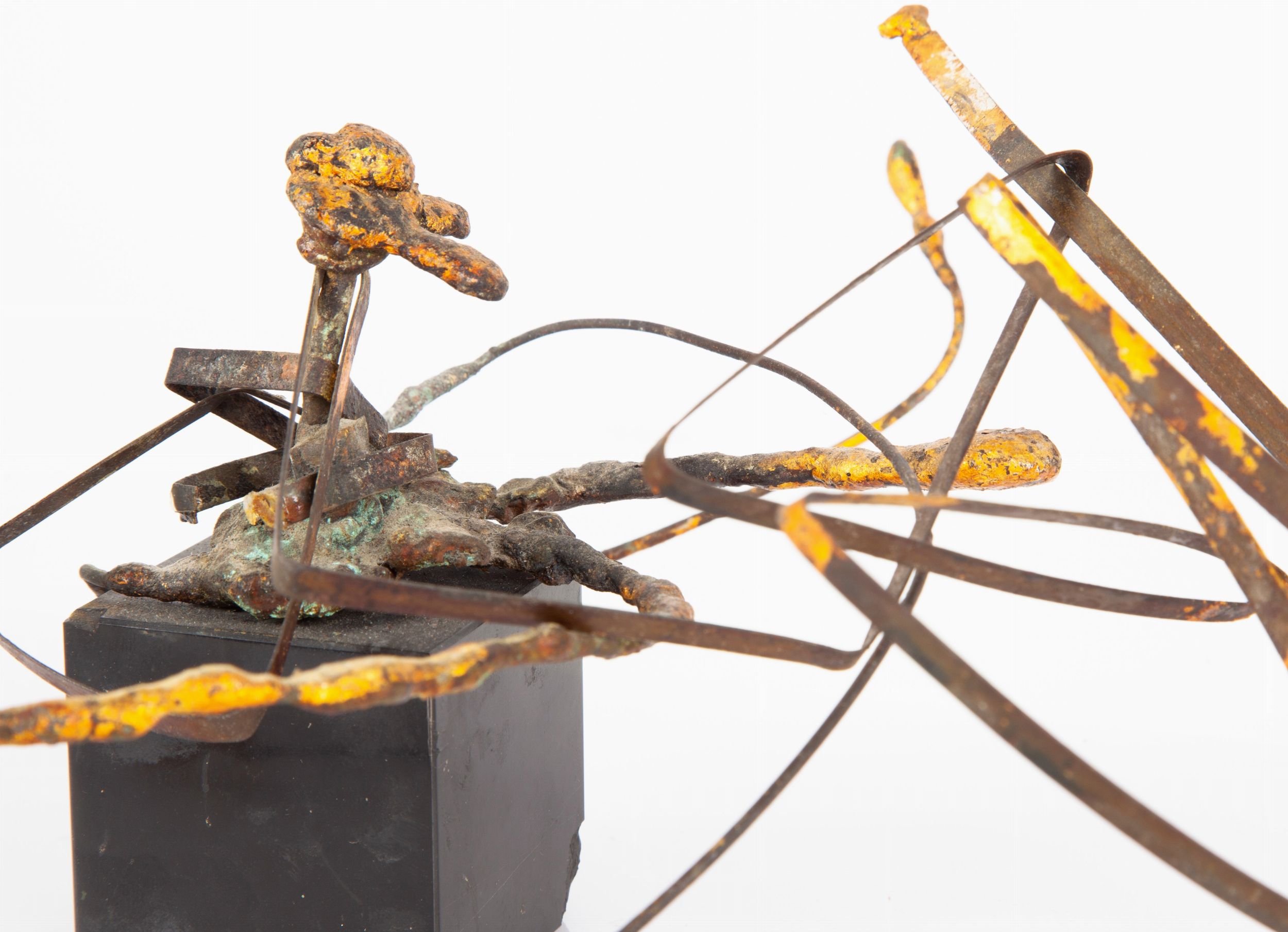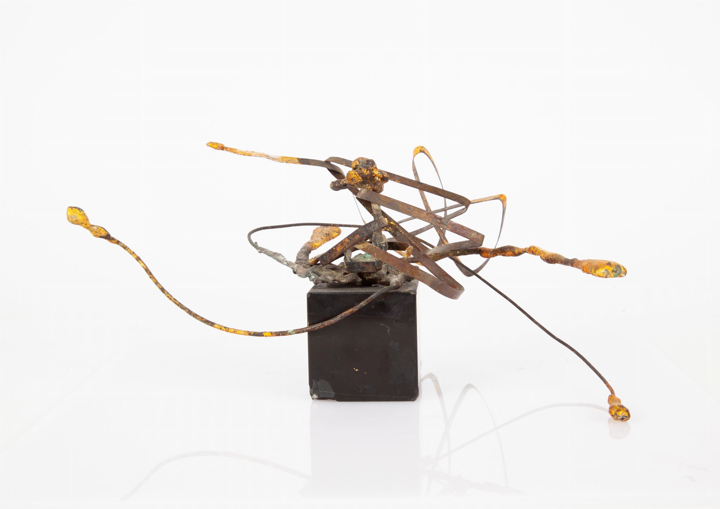 Scultura in ferro e smalto dorato, cm h 7x33 ( più base cm 5x5x5)