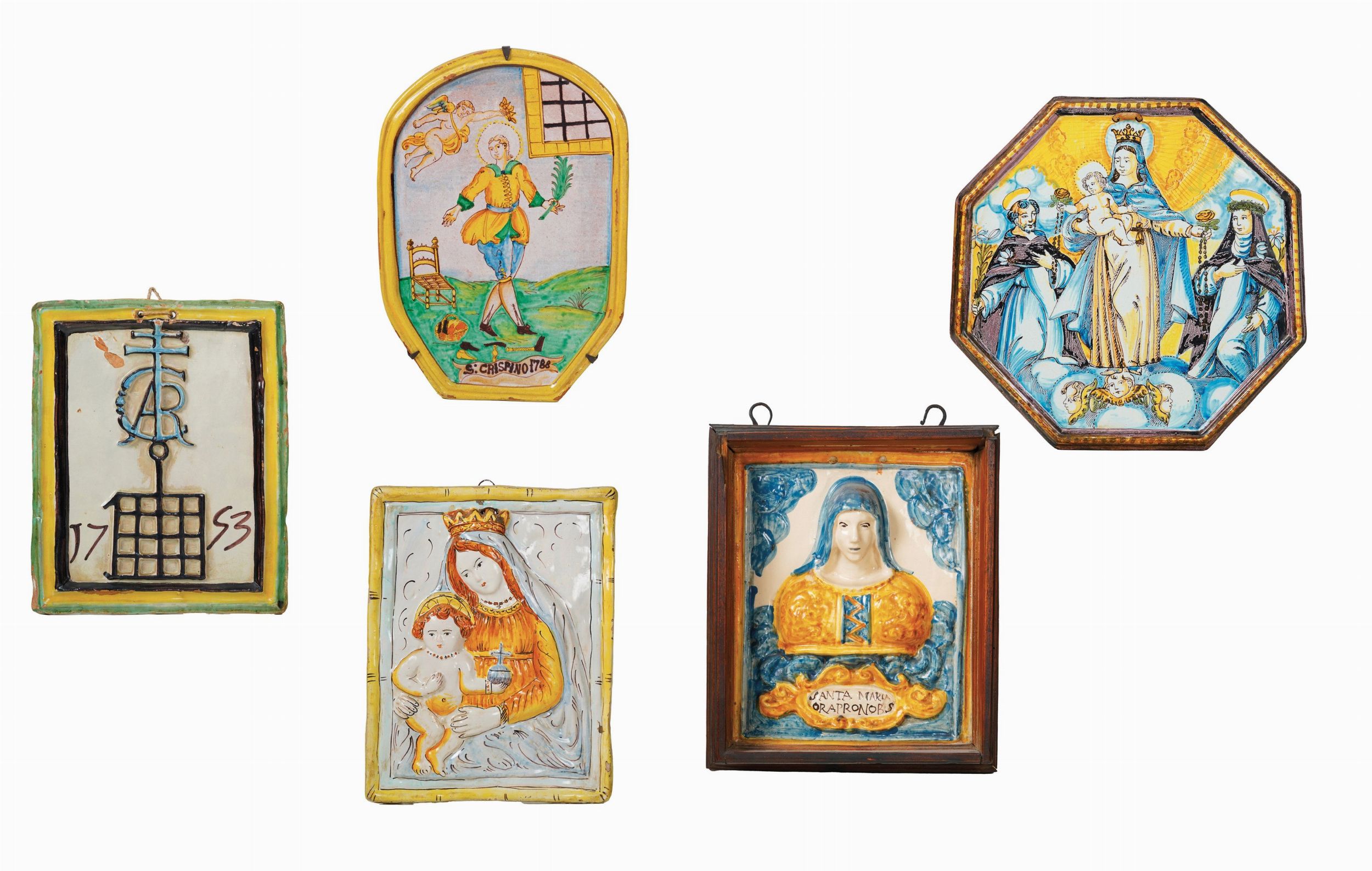 Cinque diverse targhe devozionali, XVIII e XIX secolo.
