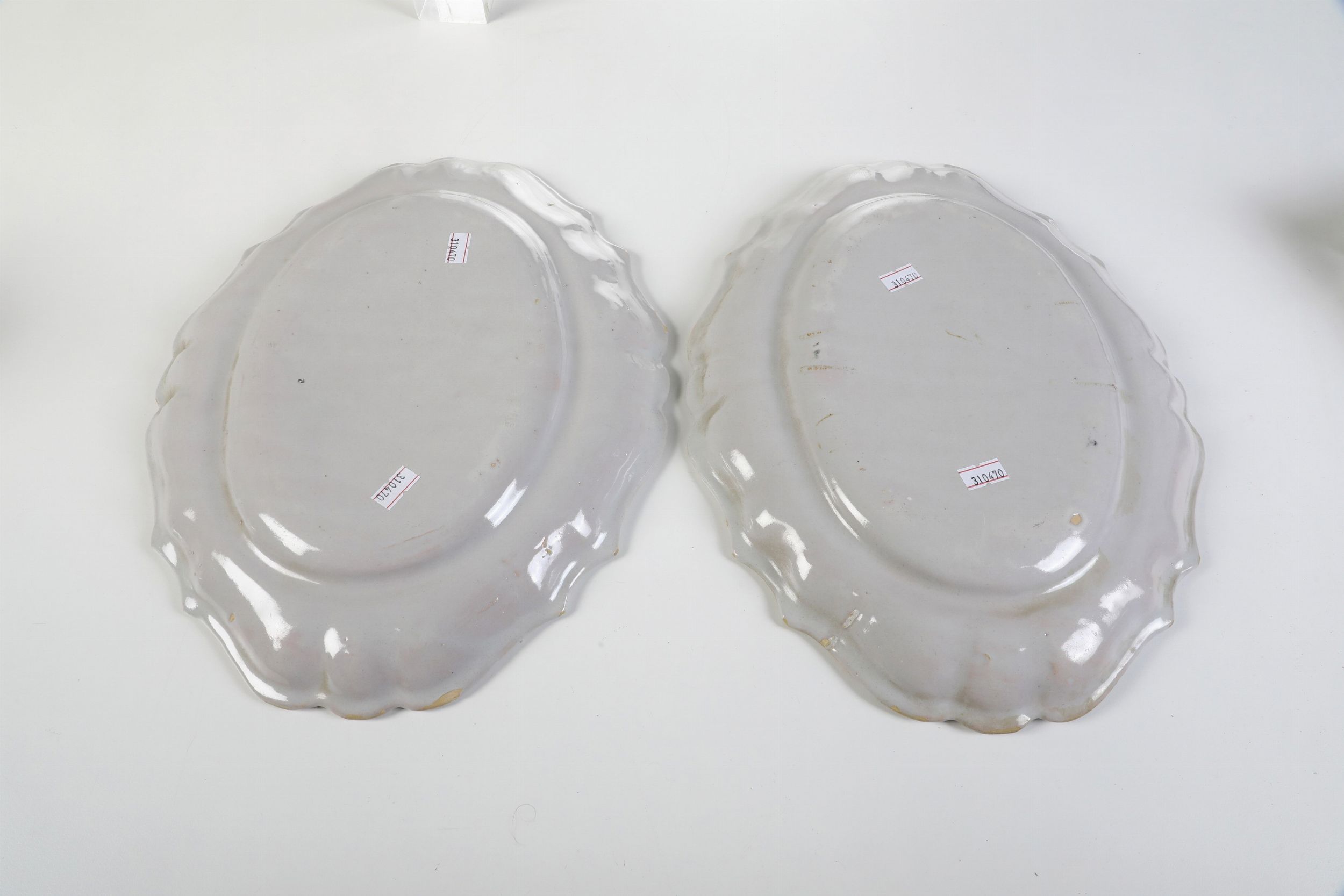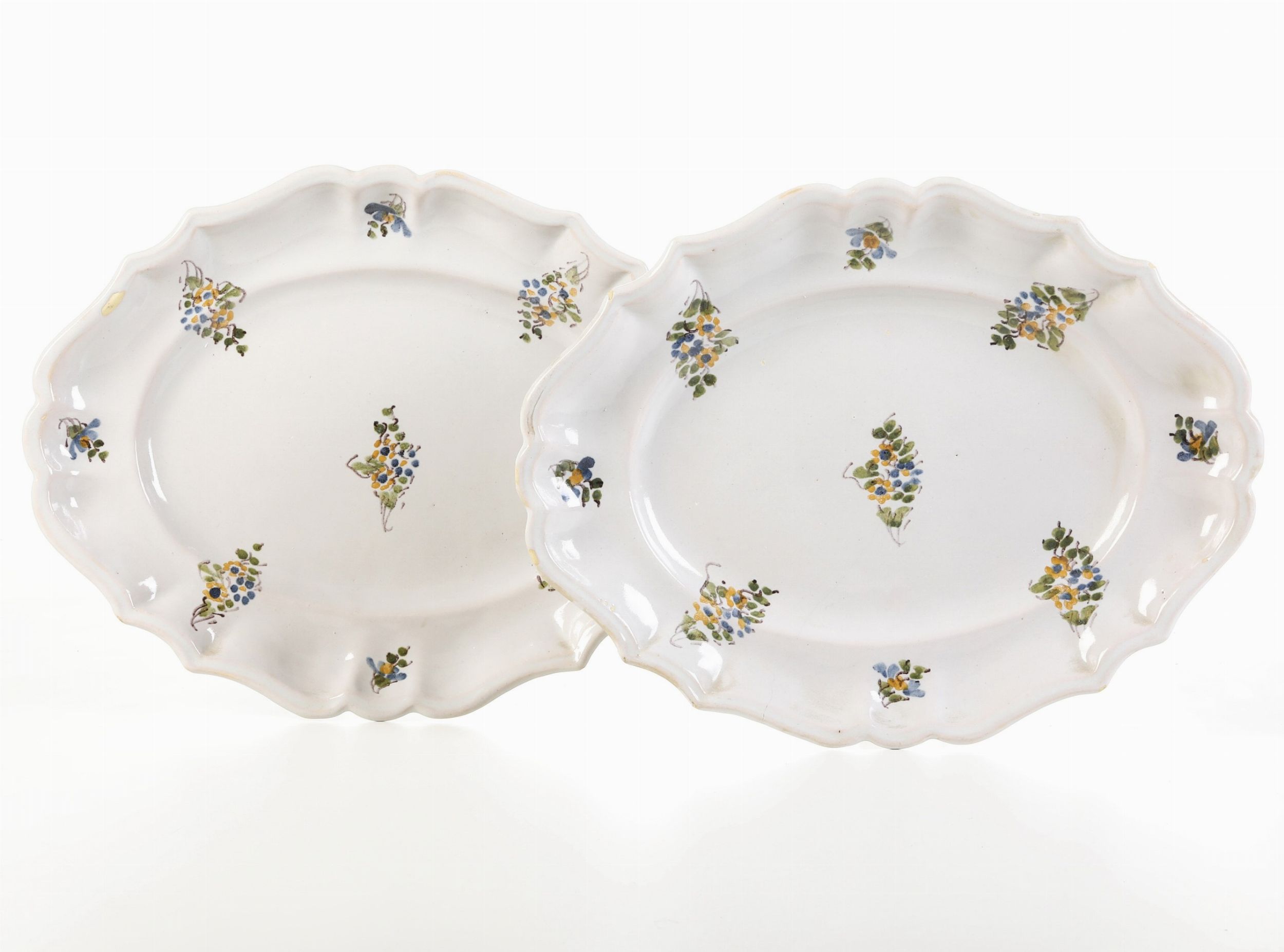 Coppia di vassoietti a rametti fioriti.