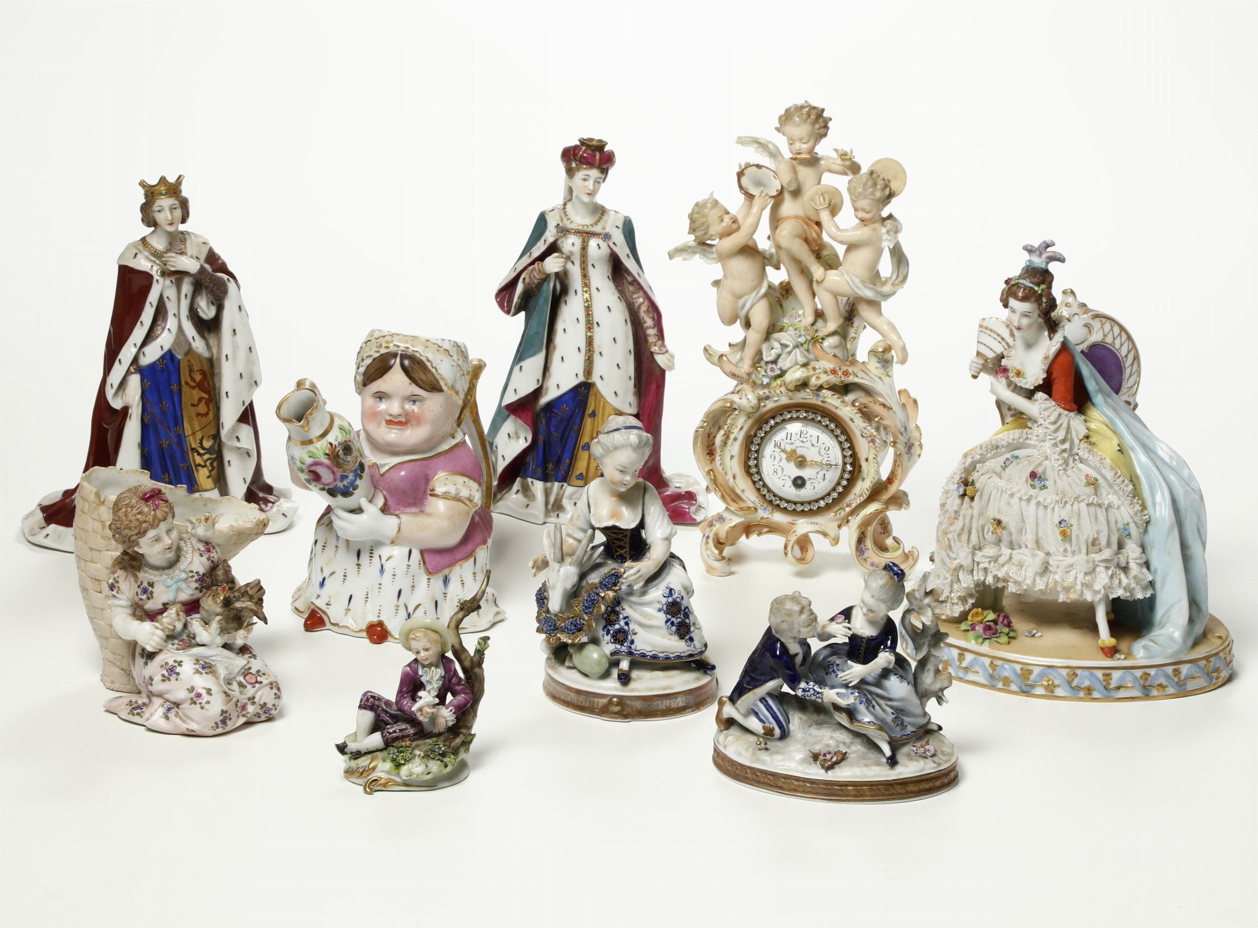 Diverse figurine e un orologio, XX secolo.