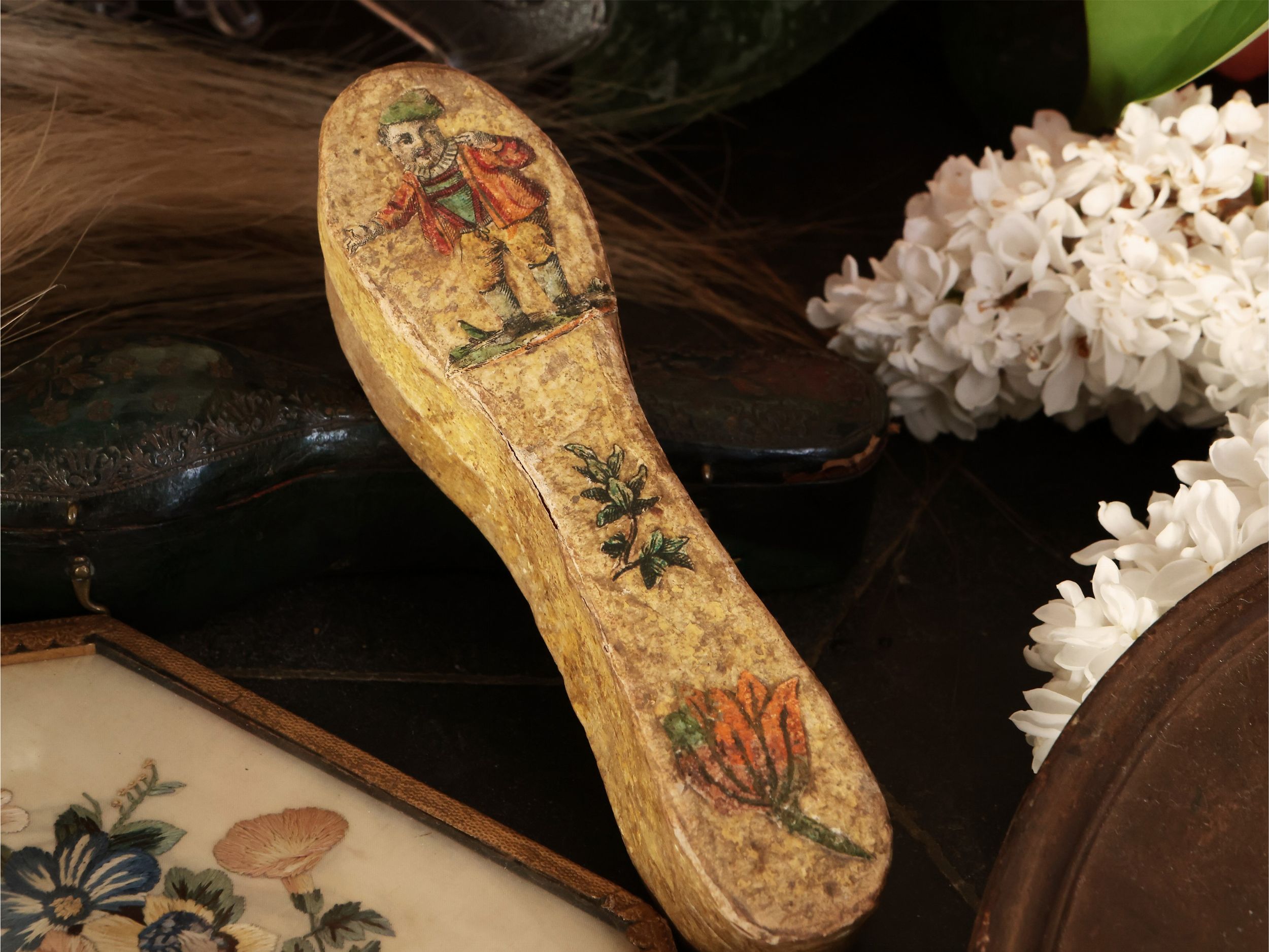 da cm 3,5x14 a cm 9x38 (8) XVIII/XIX secolo tra cui uno scacciamosche esotico con crini di cavallo, due custodie del XVIII secolo per cucchiai, una delle quali realizzata ad arte povera e l'altra in cuoio impresso, un bassorilievo in bronzo ed uno in terracotta, alcuni difetti