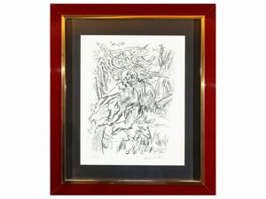 Matrice cm 35x33 pochoir, firmato, in cornice, lievi difetti