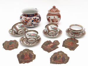 h da cm 13 a cm 17 (11) XIX/XX secolo tra cui alcuni frammenti di festoni sacri raffiguranti i 5 Buddha o 5 conquistatori, [..]