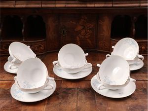XX secolo decorato con motivo floreale nei toni pastello e bordo oro, composto da 12 tazze corredate da piatti [..]
