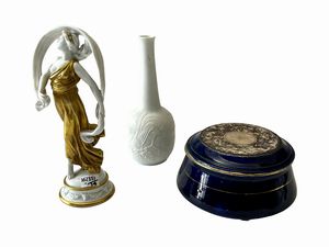 h da cm 8 a cm 21 (3) tra cui una figura in porcellana bianca e lumeggiature dorate raffigurante una danzatrice, [..]