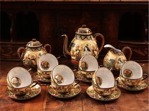 h da cm 11 a cm 18 (26) dipinto in rilievo con personaggi, composto da caffettiera, lattiera, zuccheriera e serie [..]