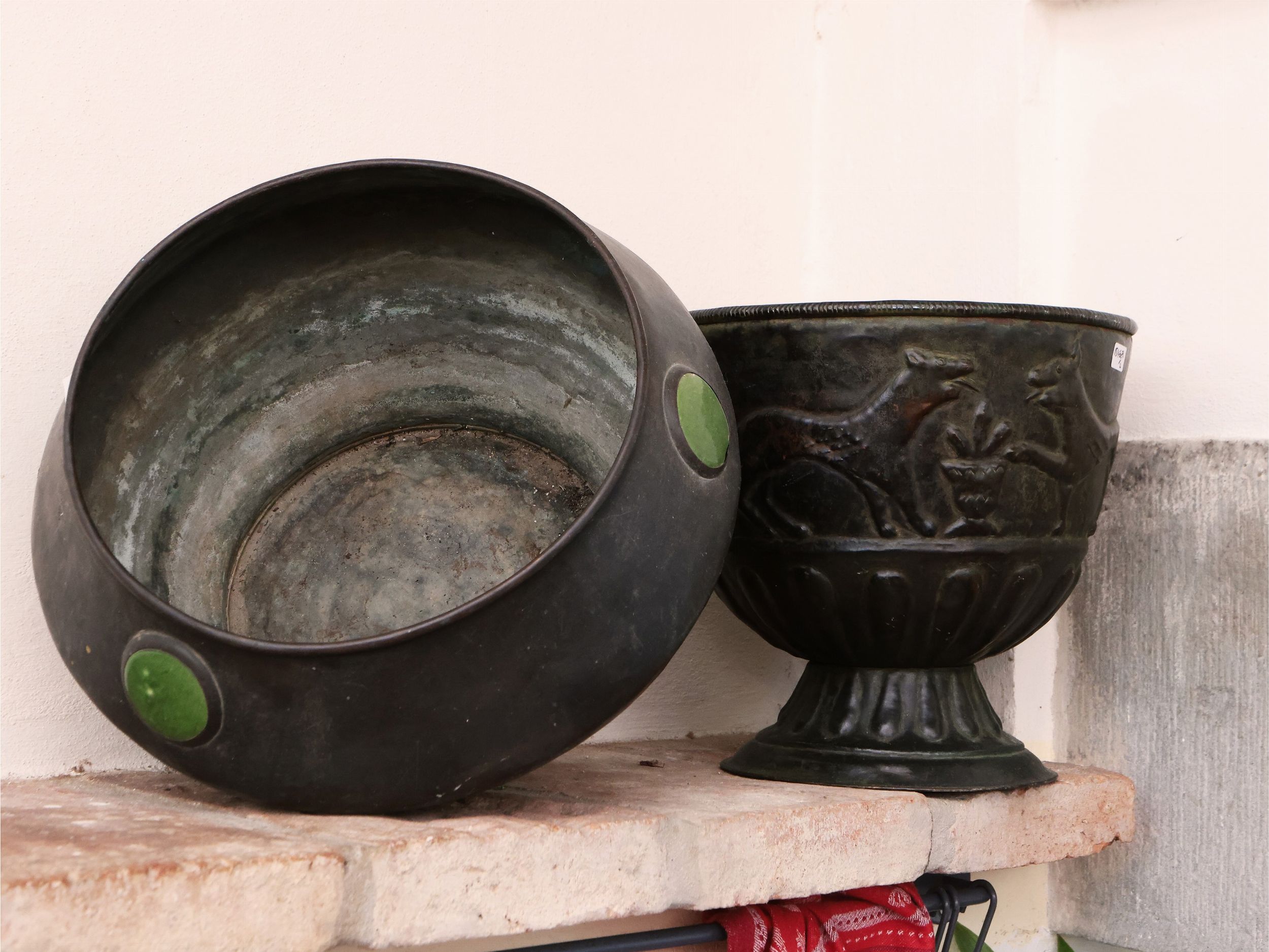 inizio del XX secolo uno ornato da borchie in ceramica invetriata verde ed uno realizzato come una grande coppa istoriata con motivi zoomorfi contrapposti