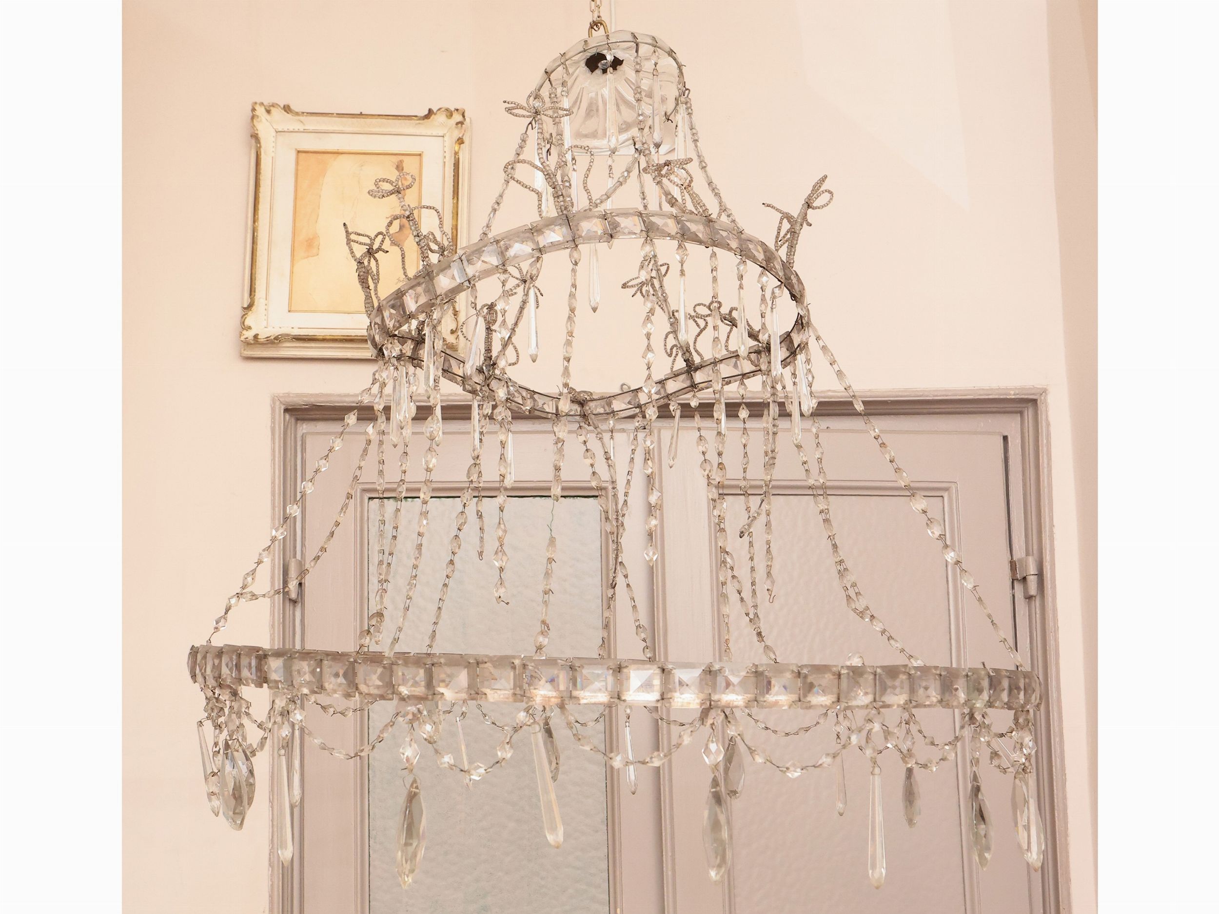 XX secolo impreziosito con perle, catene e pendenti in cristallo, possibili lievi difetti e mancanze