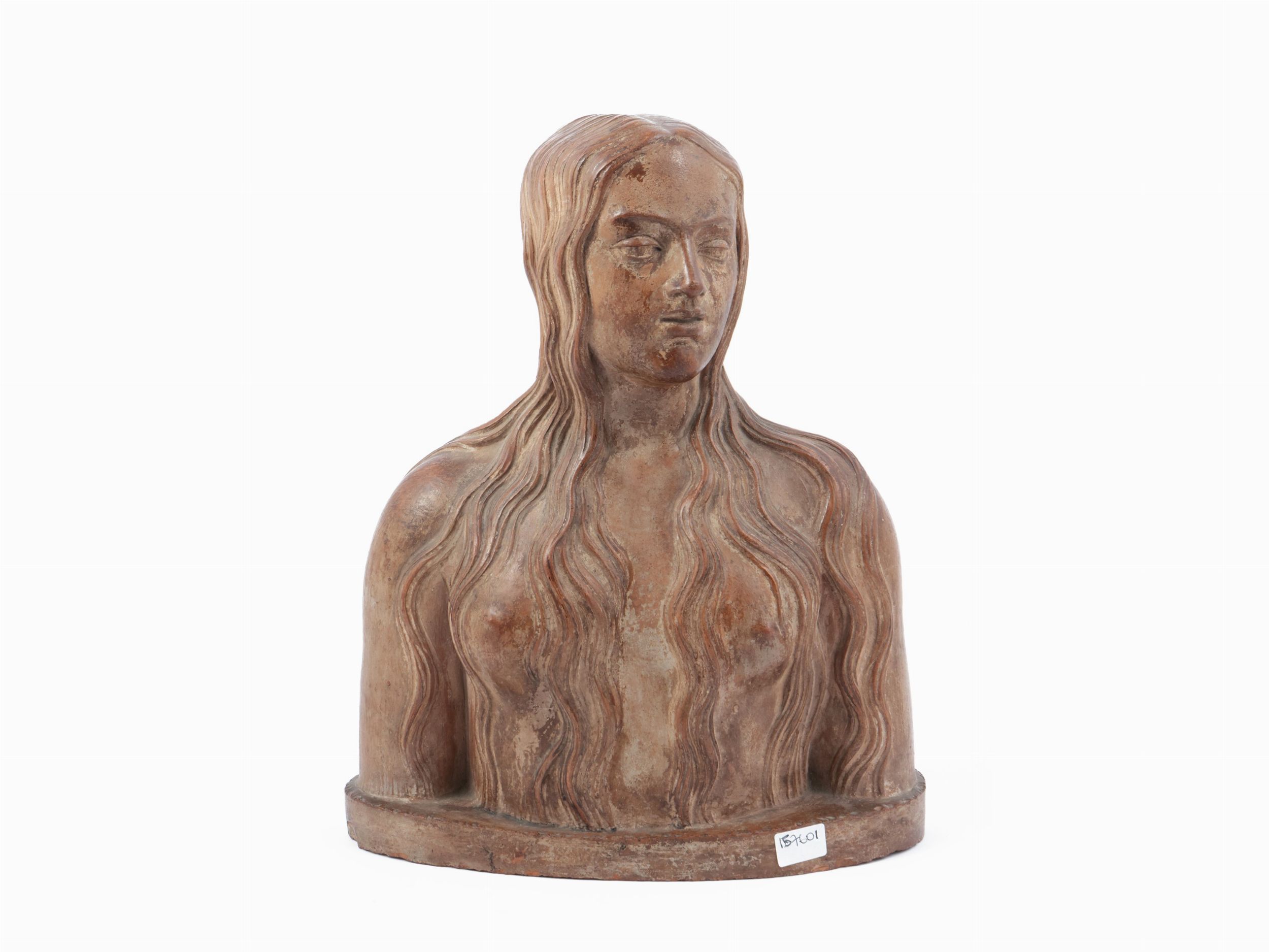 XIX secolo busto in terracotta nel gusto della scultura rinascimentale, siglato G.B, lievi difetti