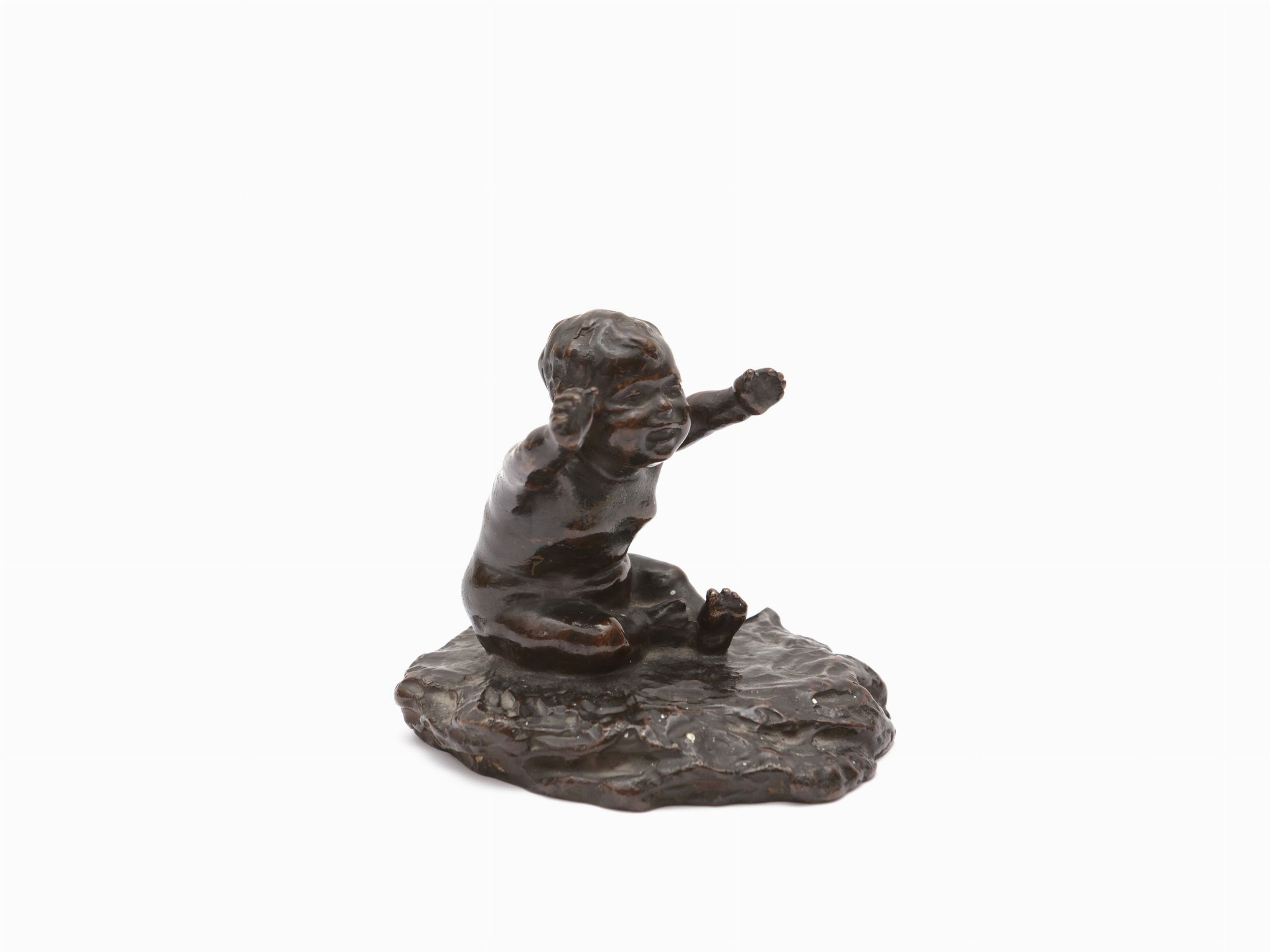 fine del XIX secolo - inizio del XX secolo due sculture in bronzo, una firmata De Luca, una su base in marmo, difetti alla base in marmo