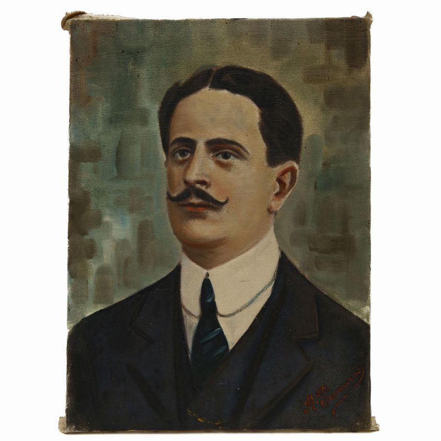 inizio del XX secolo due dipinti ad olio su tela raffiguranti un gentiluomo ed una gentildonna, firmati, alcuni difetti