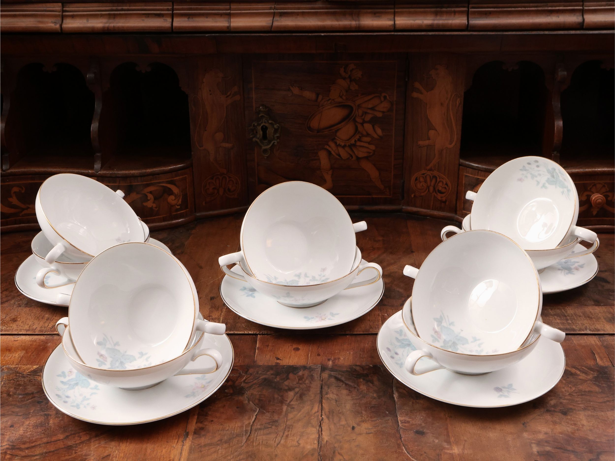 XX secolo decorato con motivo floreale nei toni pastello e bordo oro, composto da 12 tazze corredate da piattino