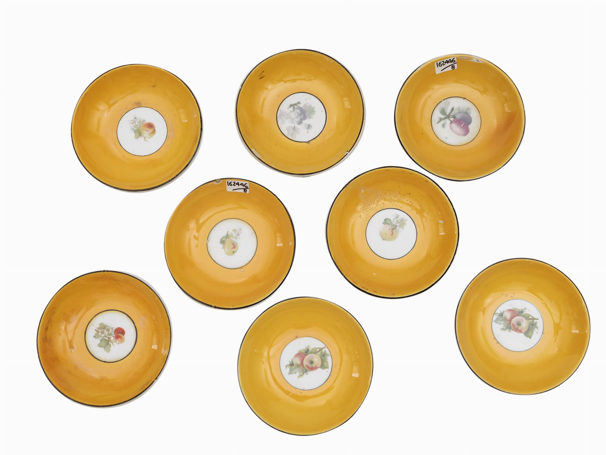 Milano, prima metà del XX secolo dipinti con motivi di frutti entro riserva circolare su fondo giallo, alcuni difetti