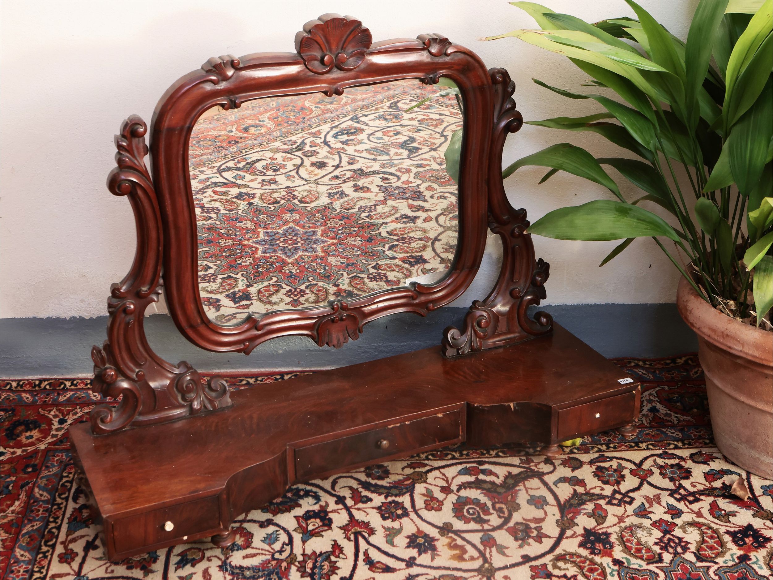 seconda metà del XIX secolo cornice intagliata a volute, base con cassettini, alcuni difetti