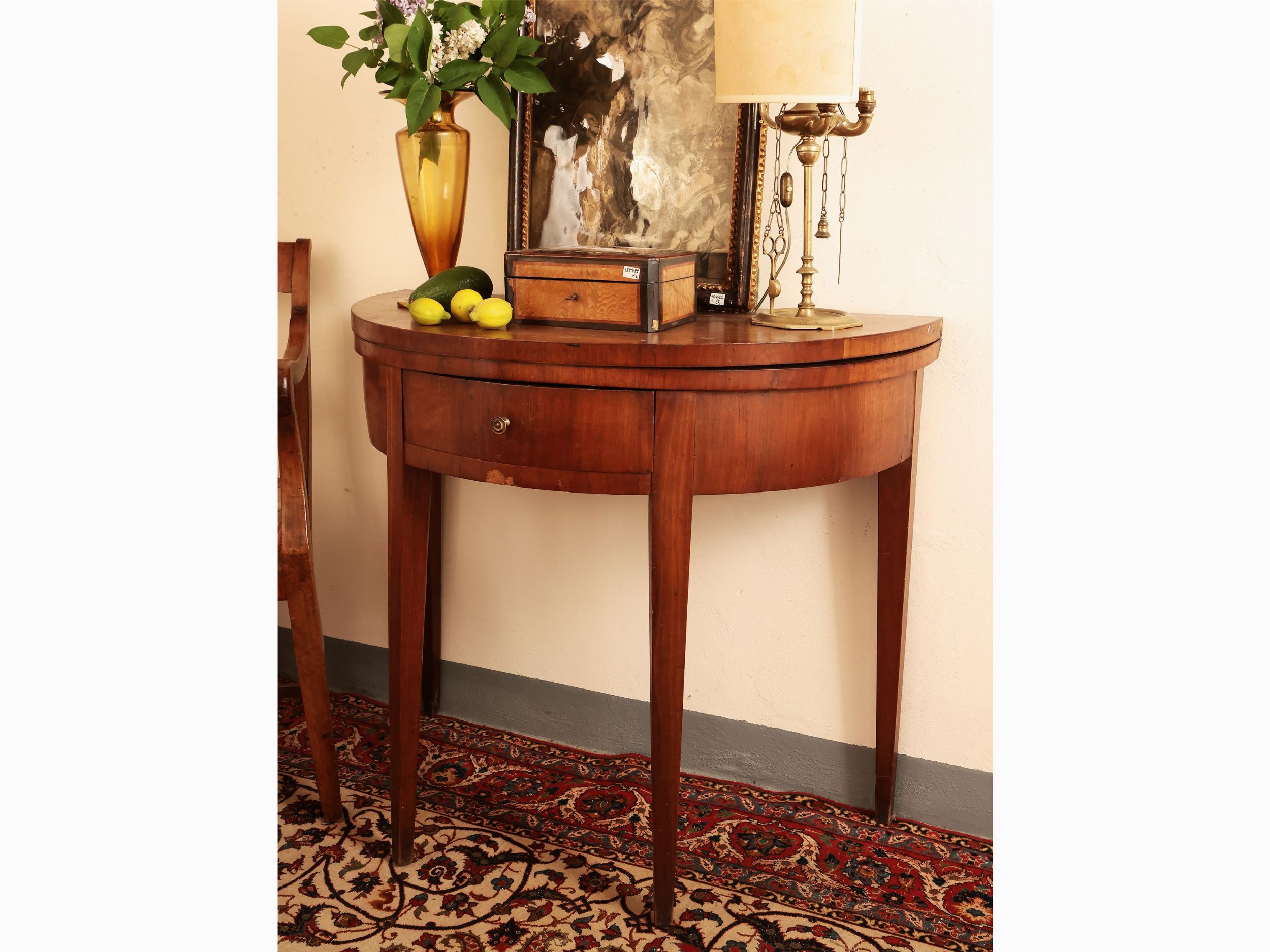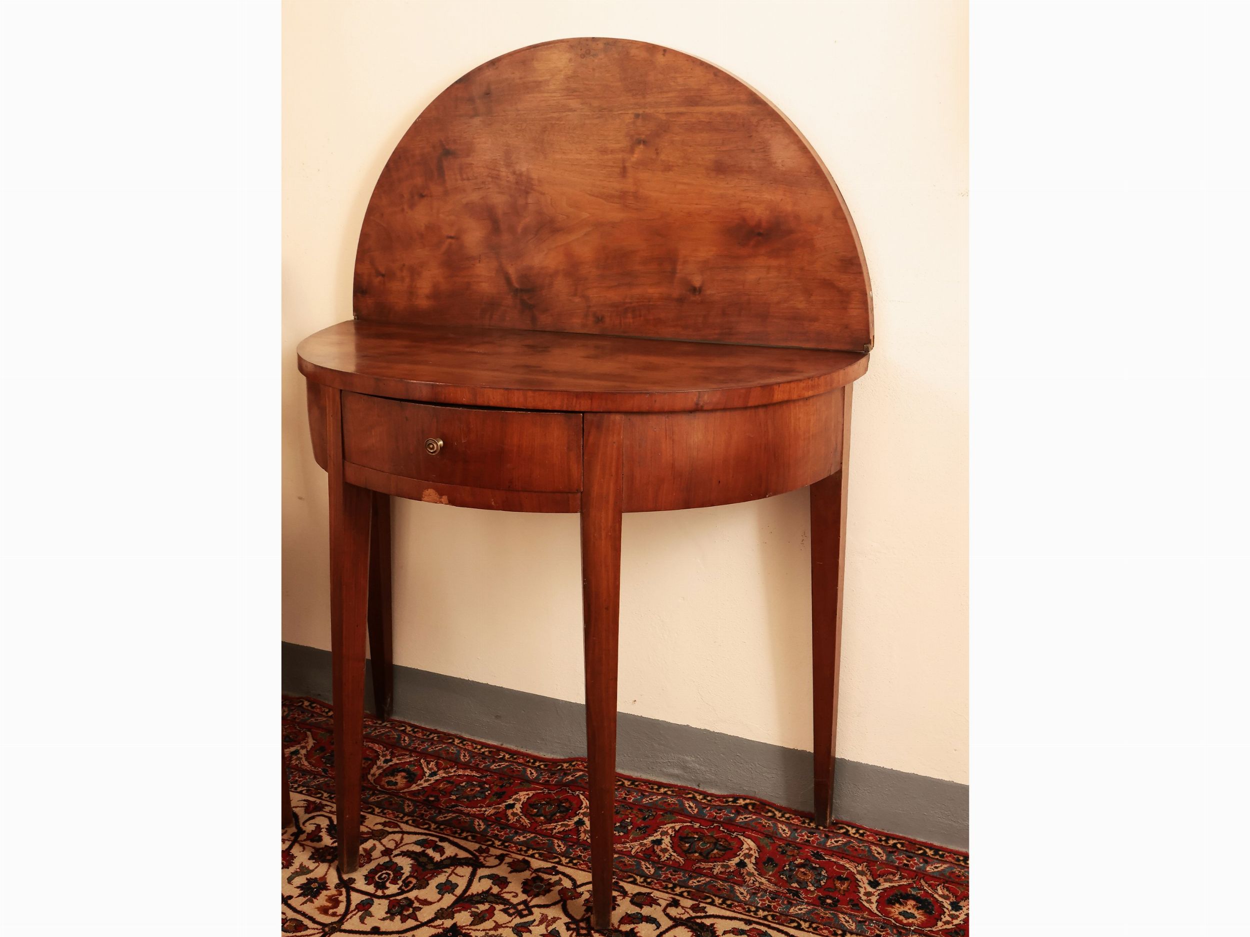 Tavolo-console a libro a mezzaluna impiallacciato in ciliegio