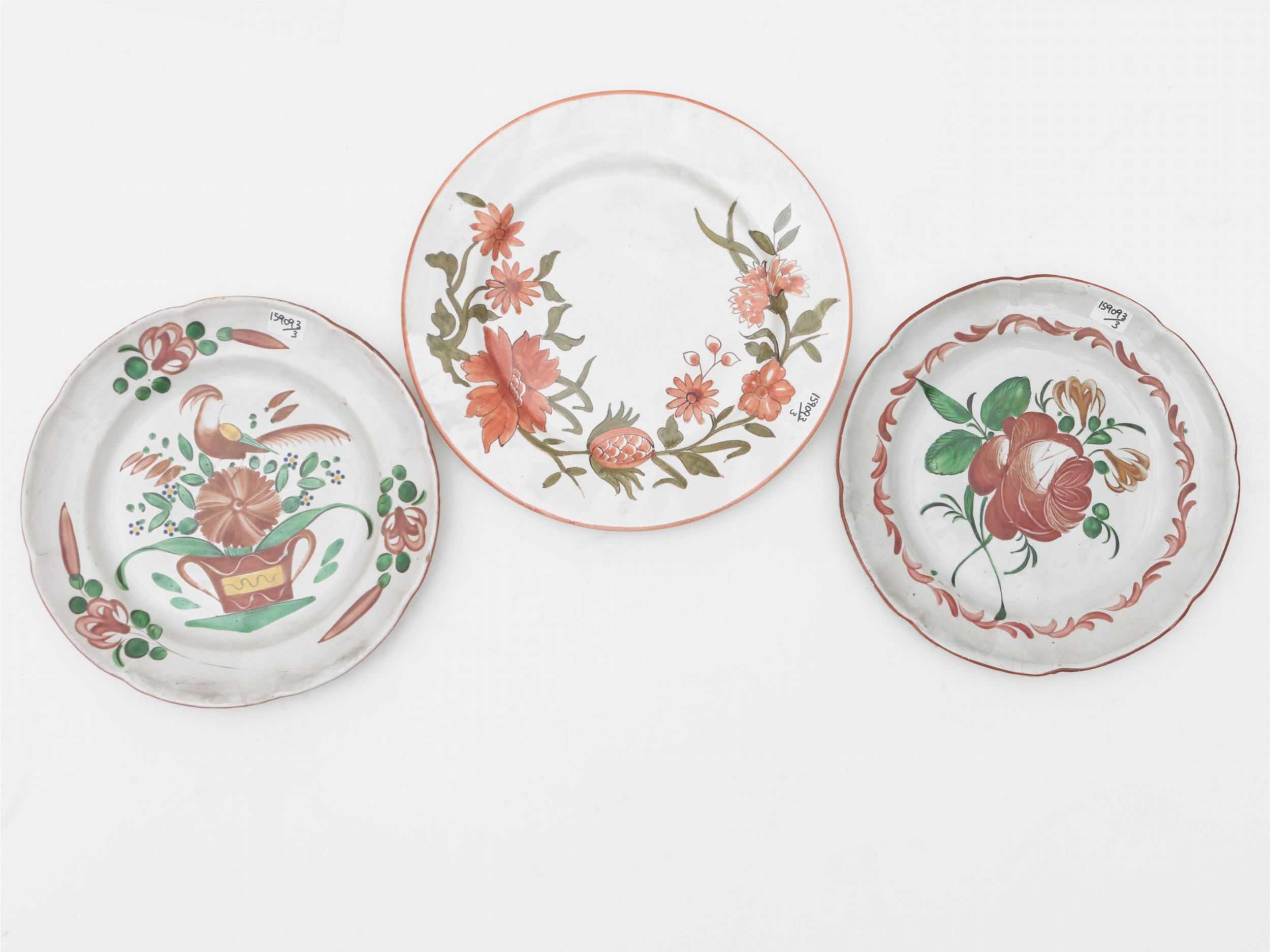 Tre piatti decorativi in maiolica