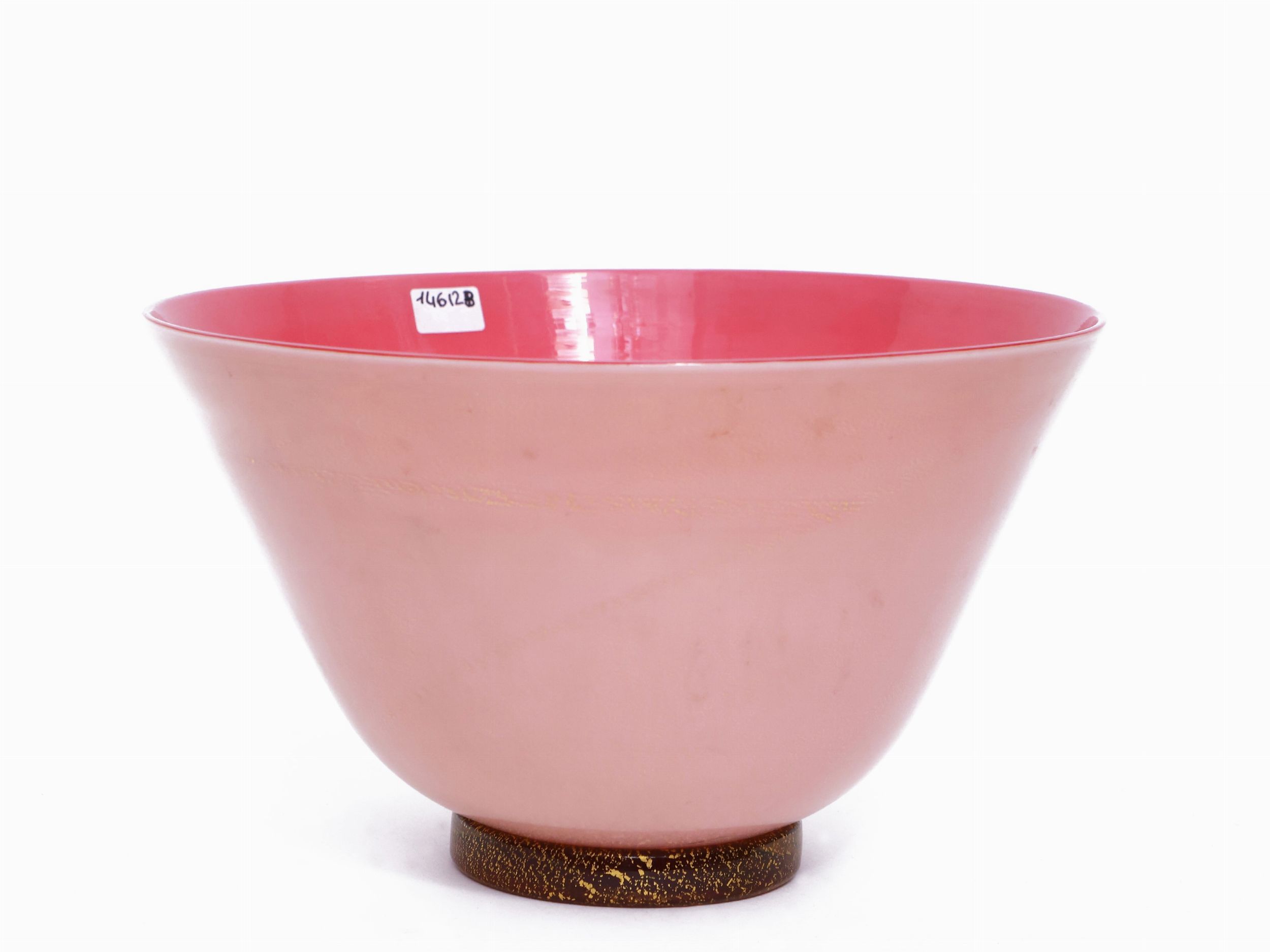 Vaso in vetro soffiato Venini con inclusioni dorate.