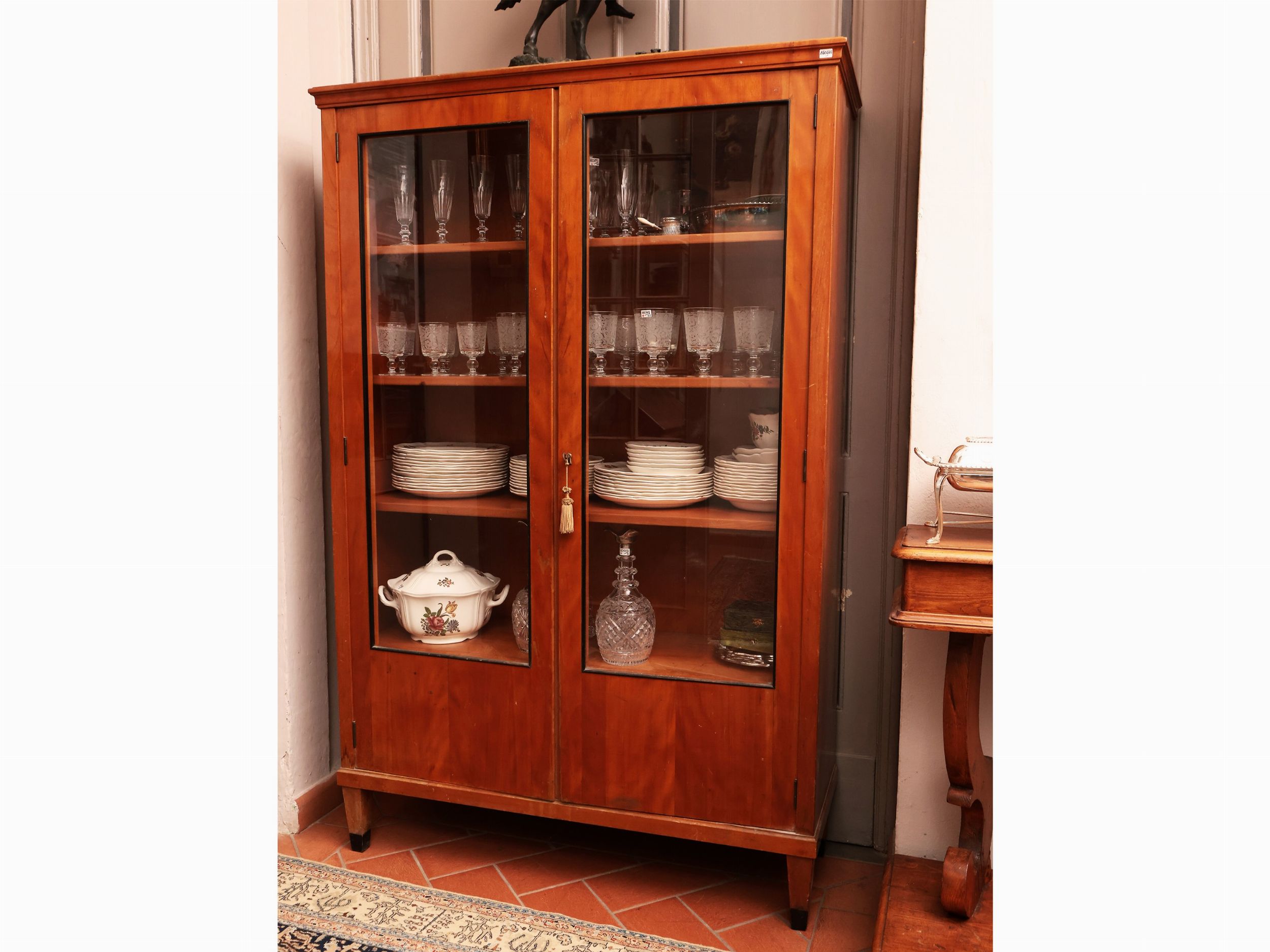 metà del XIX secolo due sportelli a vetro con dettagli in legno ebanizzato e cinque vani all'interno, piedi a faretra, lievi difetti