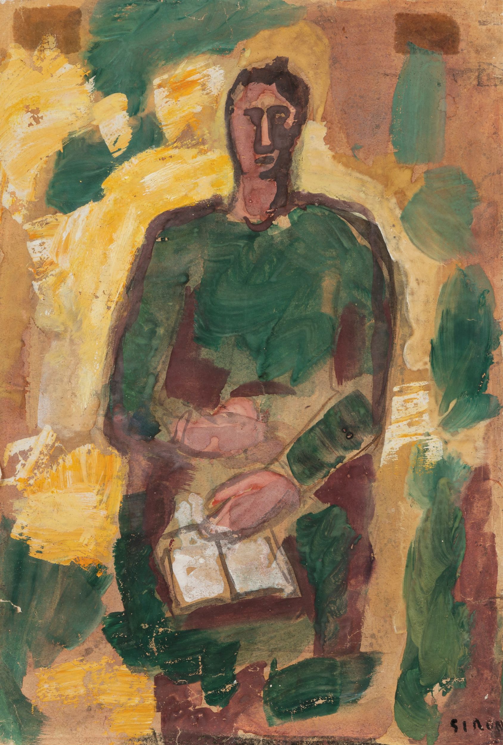 Mario Sironi : Figura con libro (recto) ; Studi a china (verso)  - Asta Off Season / Arte Moderna e Contemporanea - Associazione Nazionale - Case d'Asta italiane