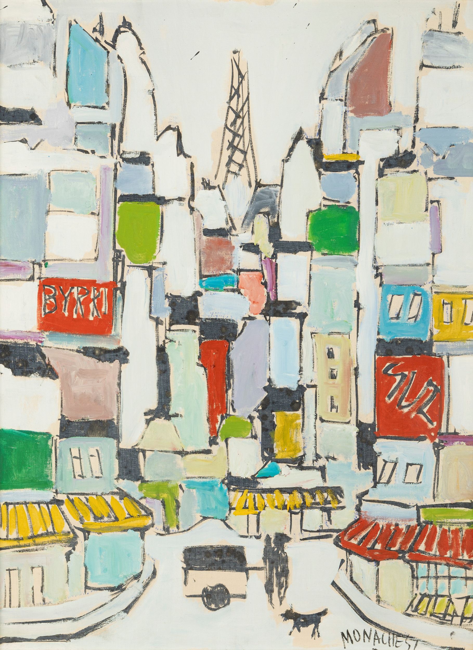 Firmato in basso a destra: Monachesi Titolato e firmato al verso: Parigi quartiere latino, Sante Monachesi