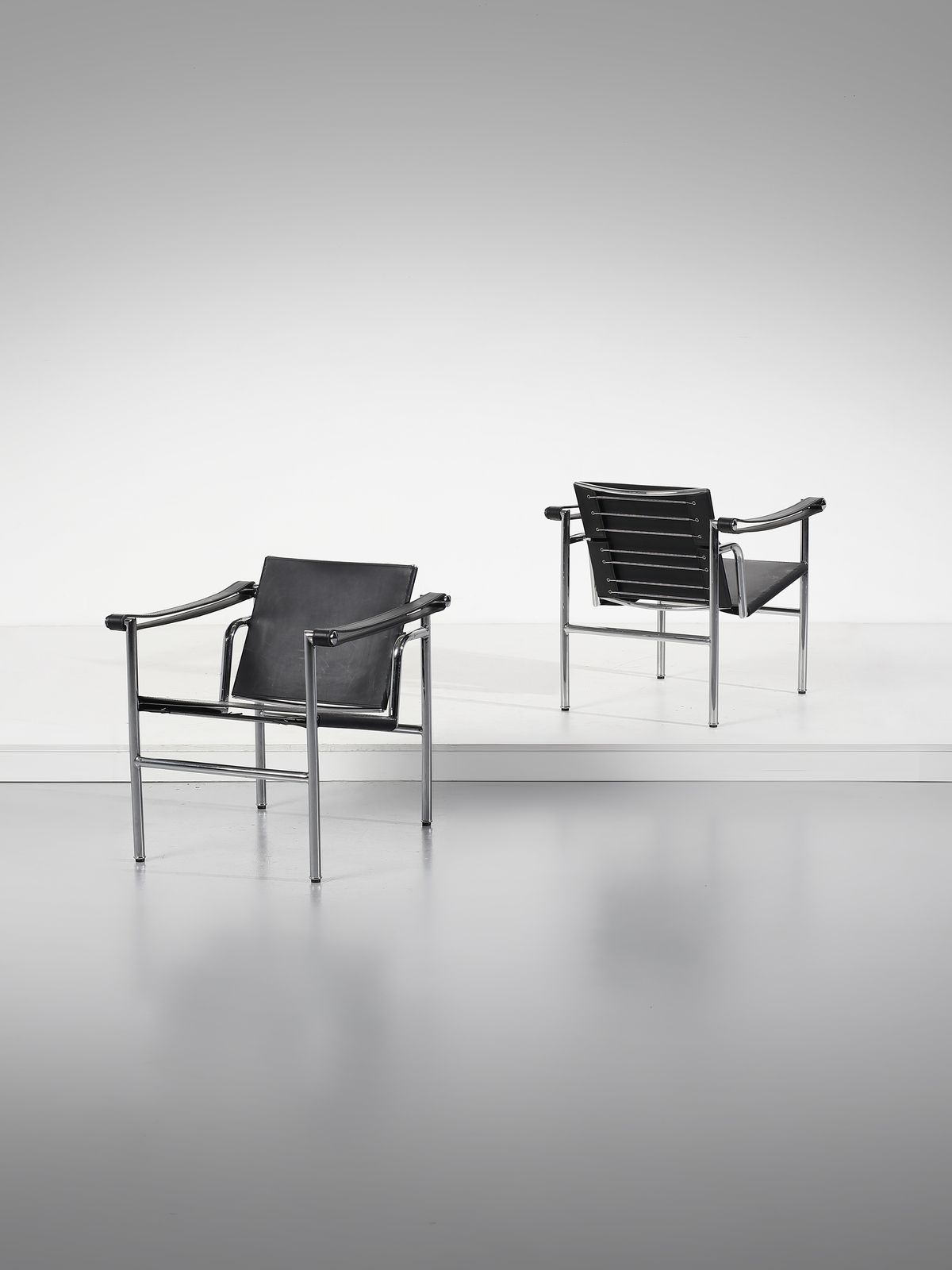 Coppia di poltroncine ispirate al modello LC1 di Le Corbusier