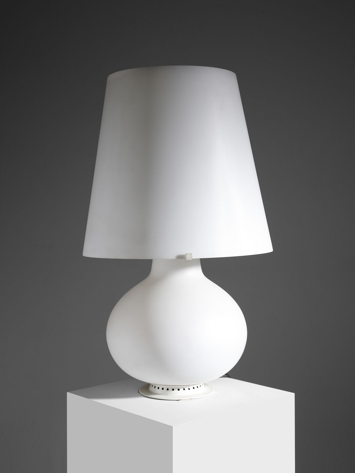 Bibliografia: G. Gramigna, Repertorio del design italiano 1950-2000 per l'arredamento domestico, Allemandi, Torino 2021, p. 39. Fontana Arte nei migliori negozi, 'Quaderni Fontana Arte', Milano, s.e. s.d. s.p.. Fontana Arte. Illuminazione, 'Quaderni Fontana Arte', n. 1, s.e. s.d. p. 83