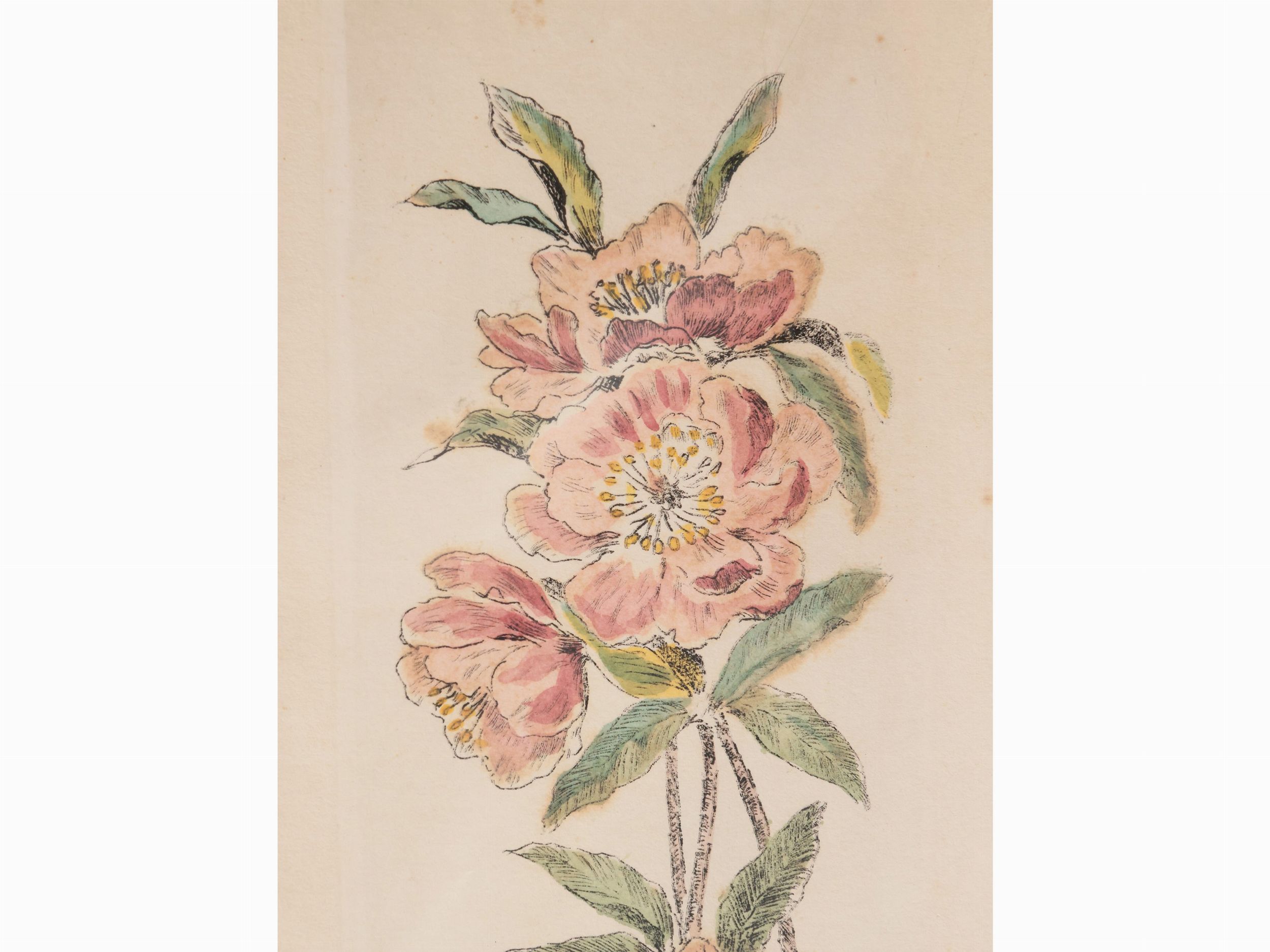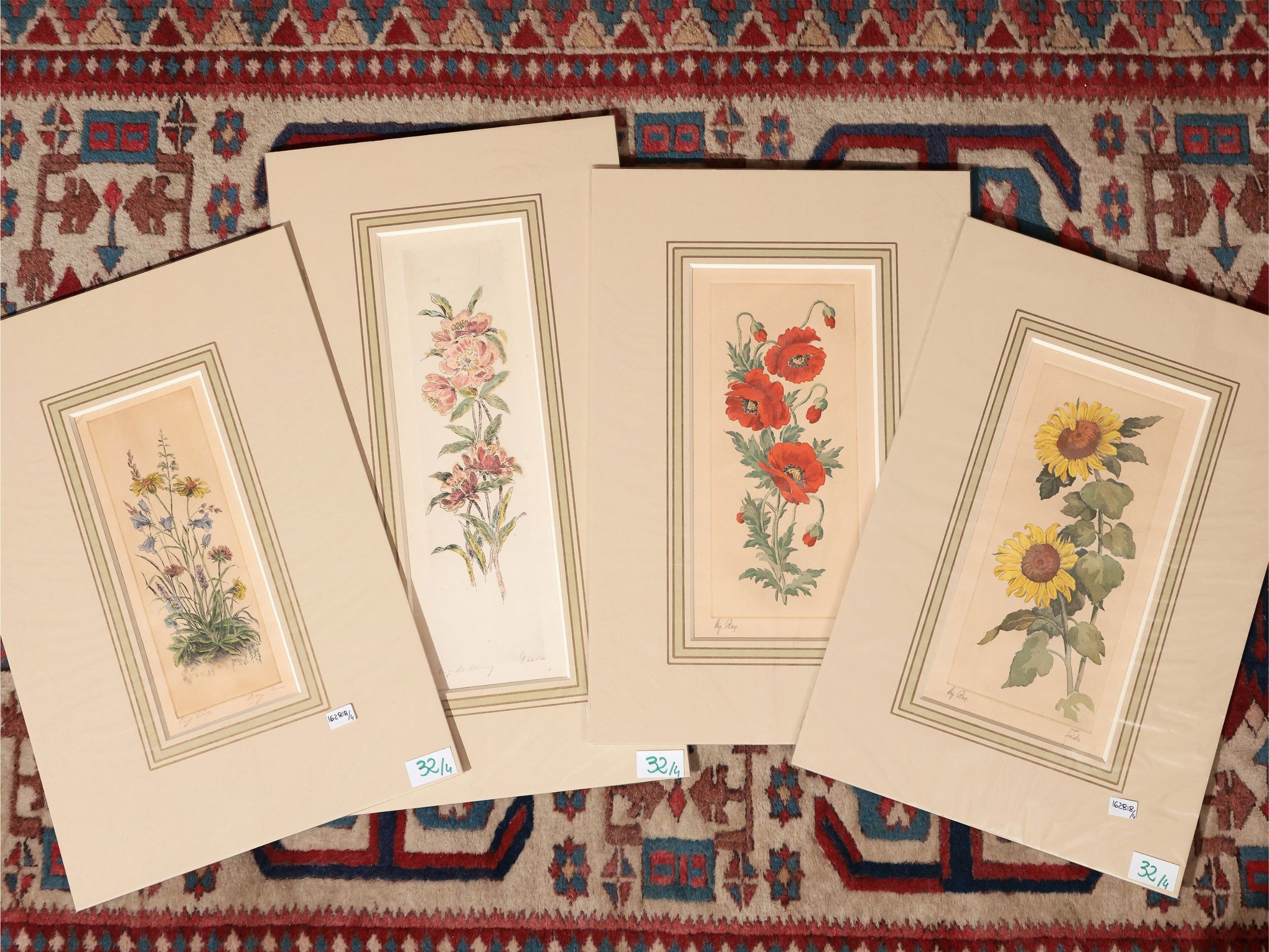 Inizio del XX secolo quattro incisioni su rame, colorate, con passe-partout