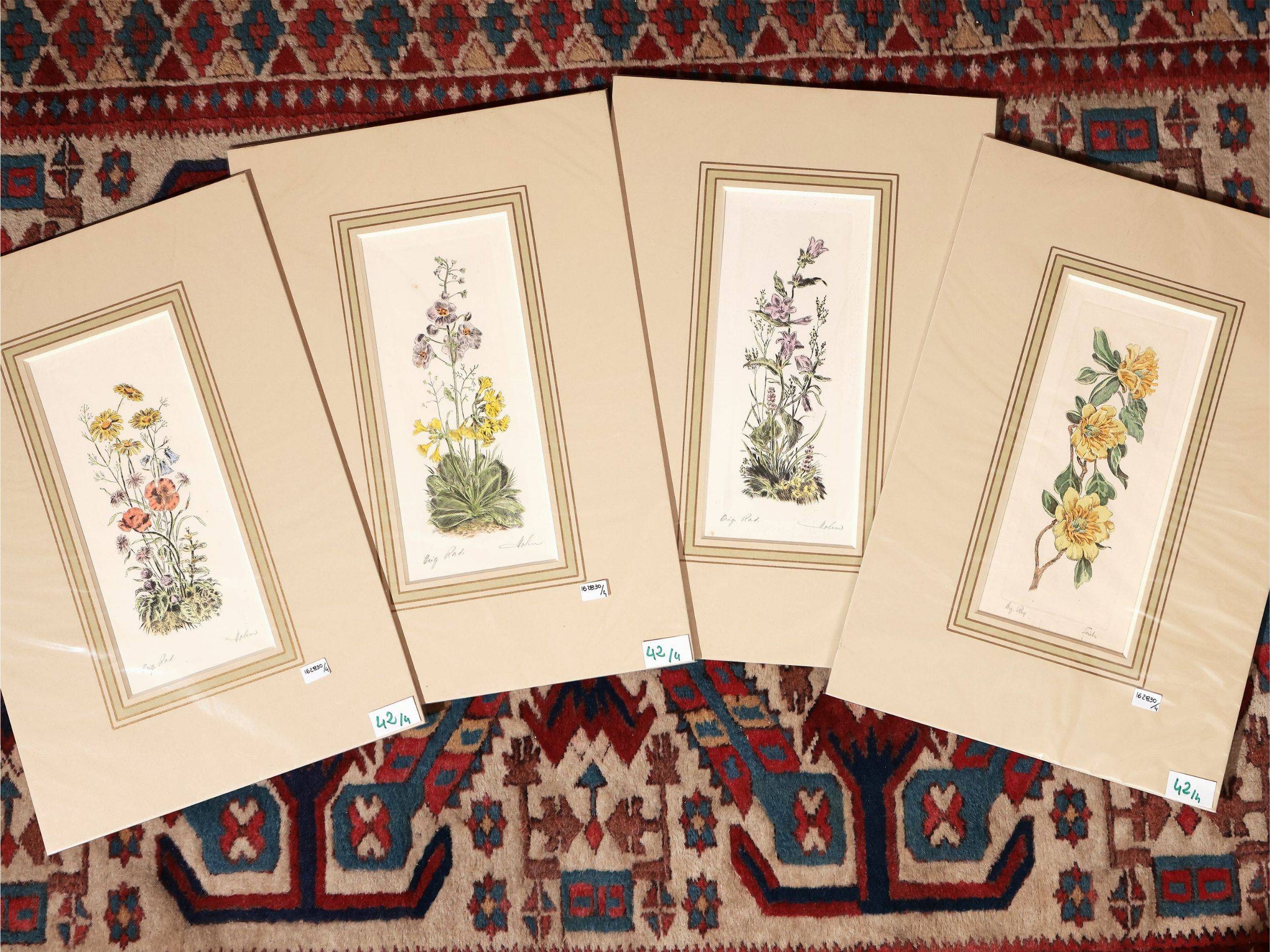 Inzio del XX secolo quattro incisioni su rame, colorazione coeva, con passe-partout, lievi tracce di foxing