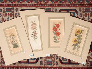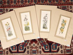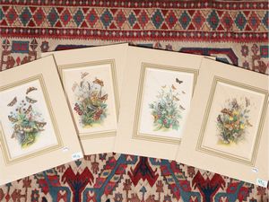 passe-partout cm 40x33 (4) XIX secolo quattro litografie, colorazione coeva, con passe-partout, tracce di foxi [..]
