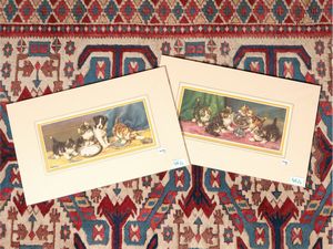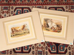 passe-partout cm 30,5x49 (2) XX secolo due cromolitografie, con passe-partout