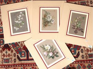passe-partout da cm 36x42 a cm 49x40 (4) Fine del XIX secolo quattro cromolitografie, con passe-partout, tracce [..]