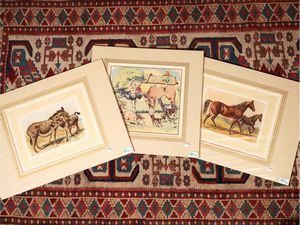 passe-partout cm 47x50 (3) Fine del XIX secolo tre cromolitografie, con passe-partout, tracce di foxing