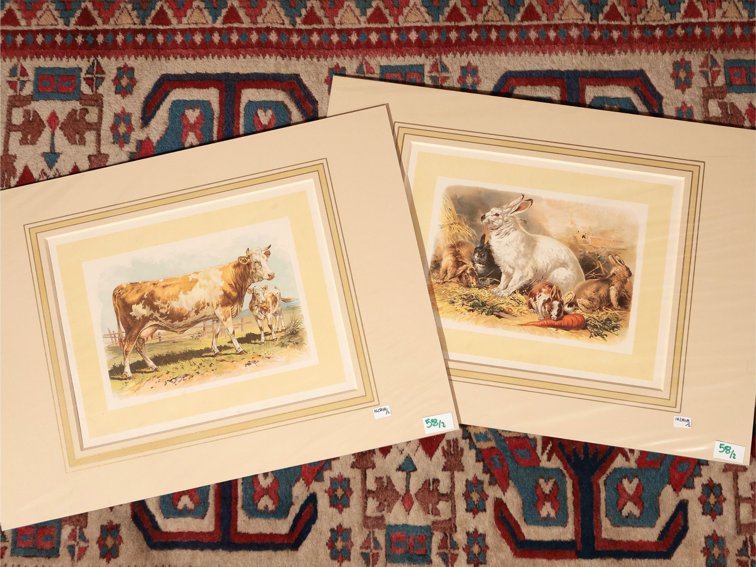 Fine del XIX secolo due cromolitografie, con passe-partout, tracce di foxing