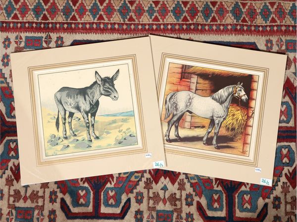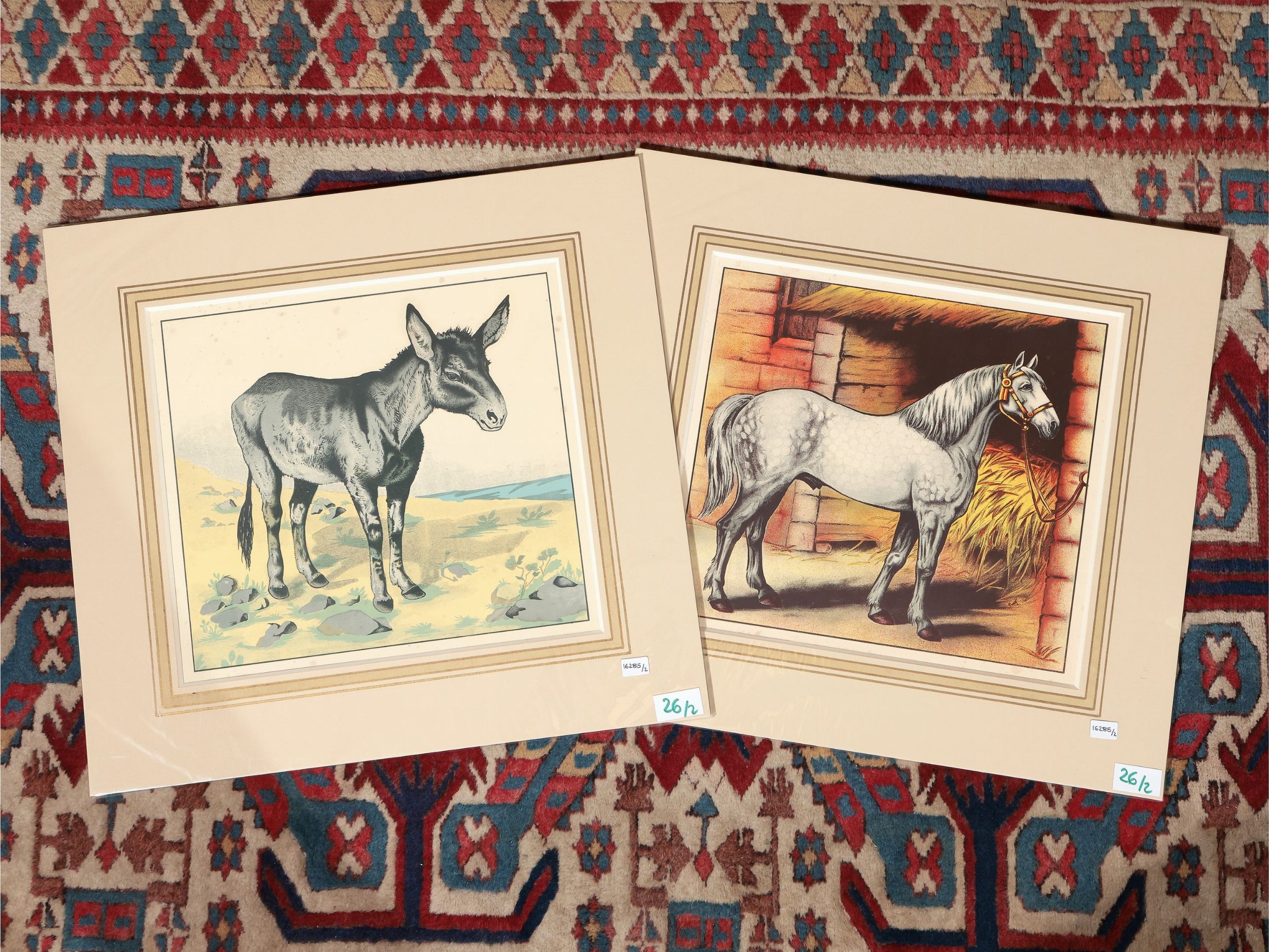 Fine del XIX secolo due cromolitografie, con passe-partout, tracce di foxing