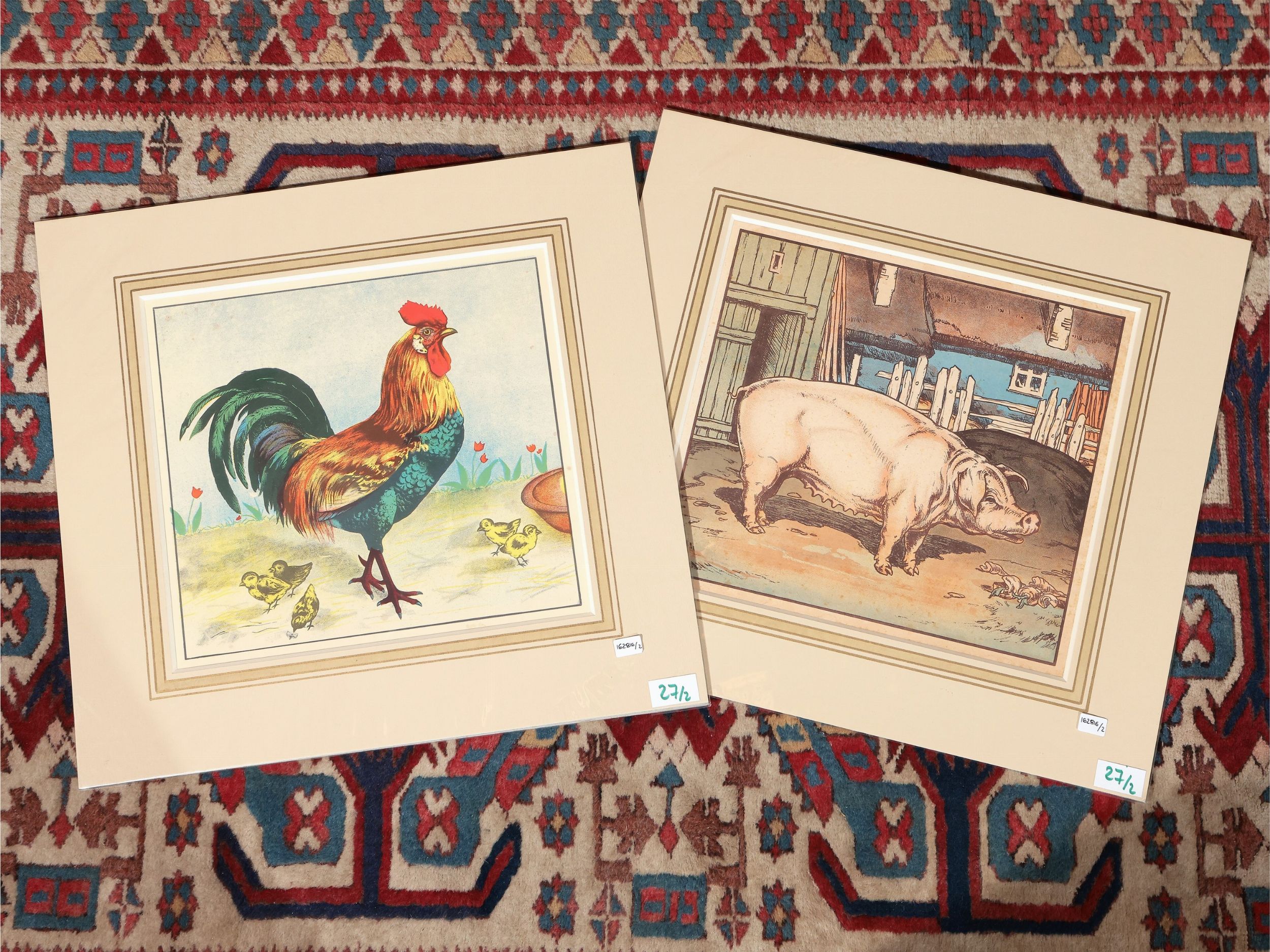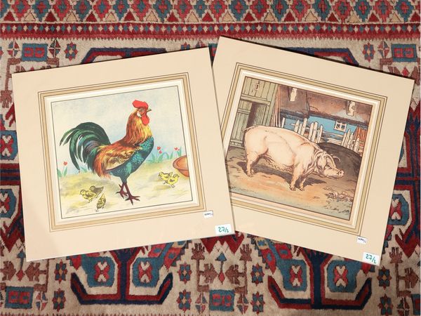 Fine del XIX secolo due cromolitografie, con passe-partout, tracce di foxing