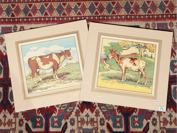 Fine del XIX secolo due cromolitografie, con passe-partout, tracce di foxing