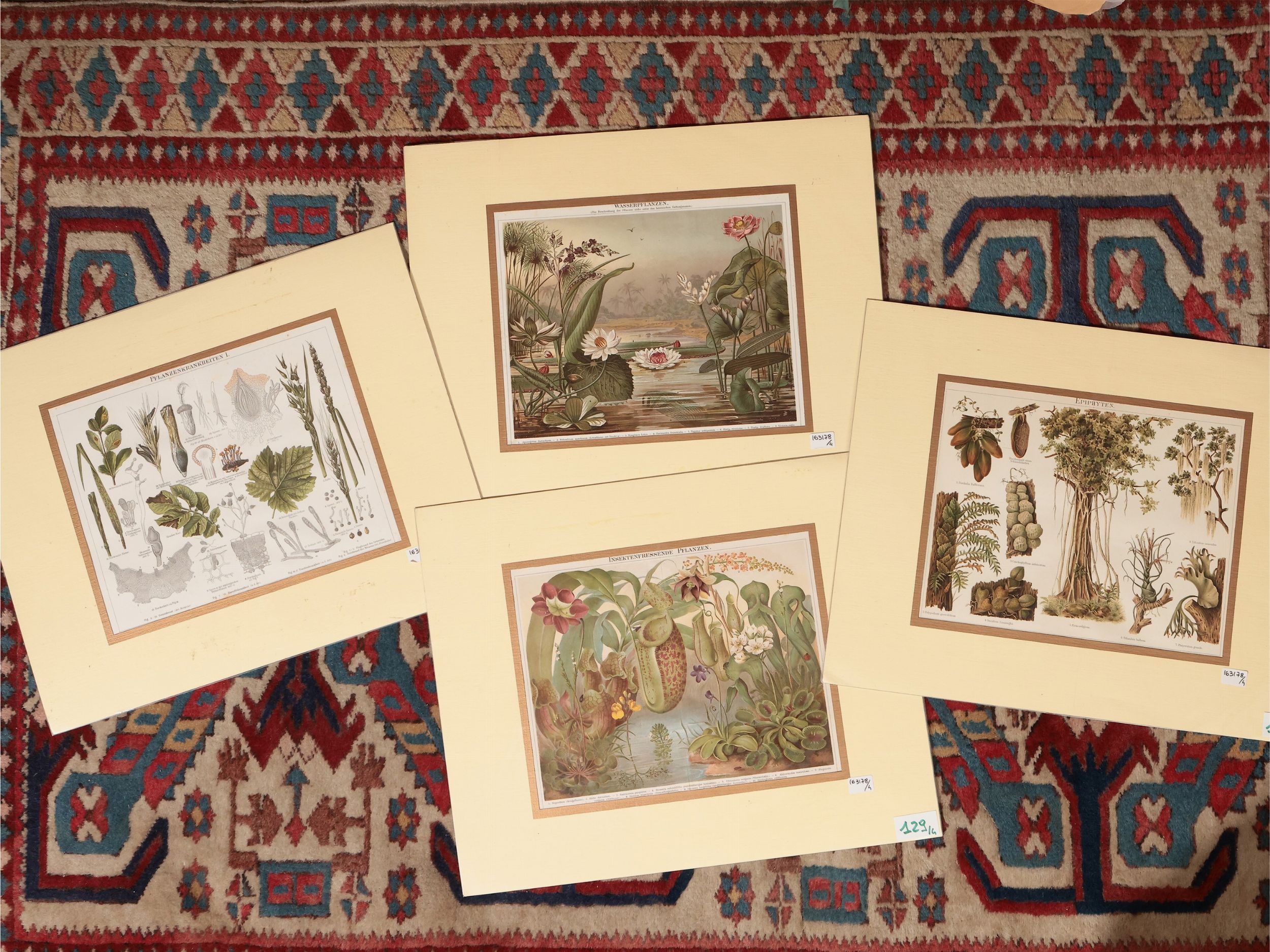 XIX secolo quattro cromolitografie con passe-partout, tracce di foxing