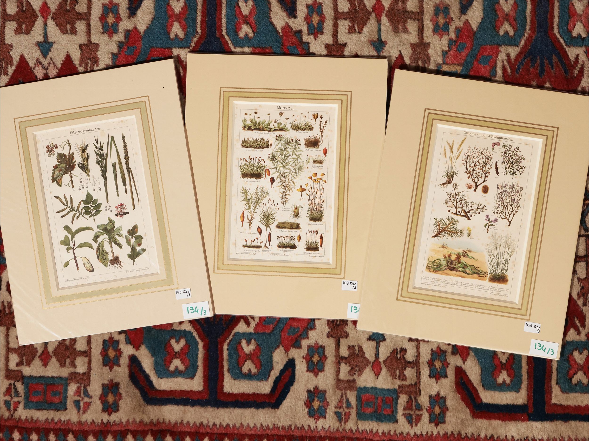 XIX secolo tre cromolitografie con passe-partout, tracce di foxing