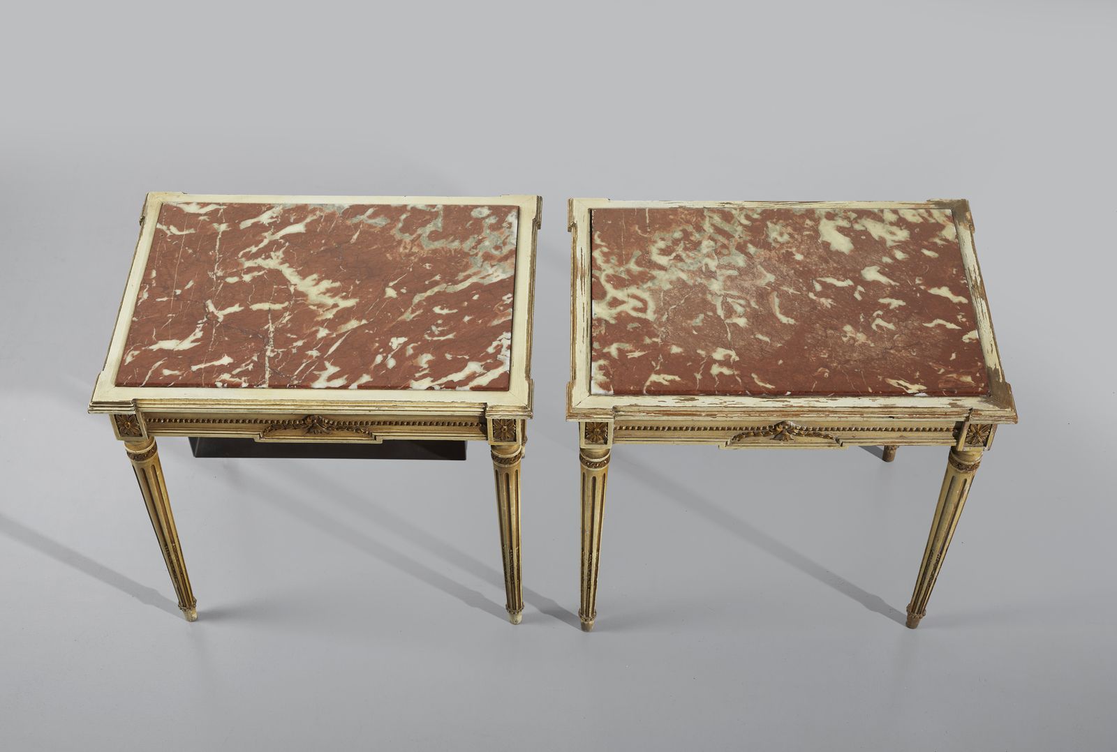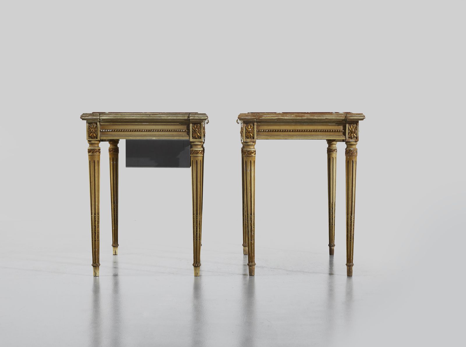 Coppia di consolle in legno intagliato, parzialmente dorato e laccato in stile Luigi [..]