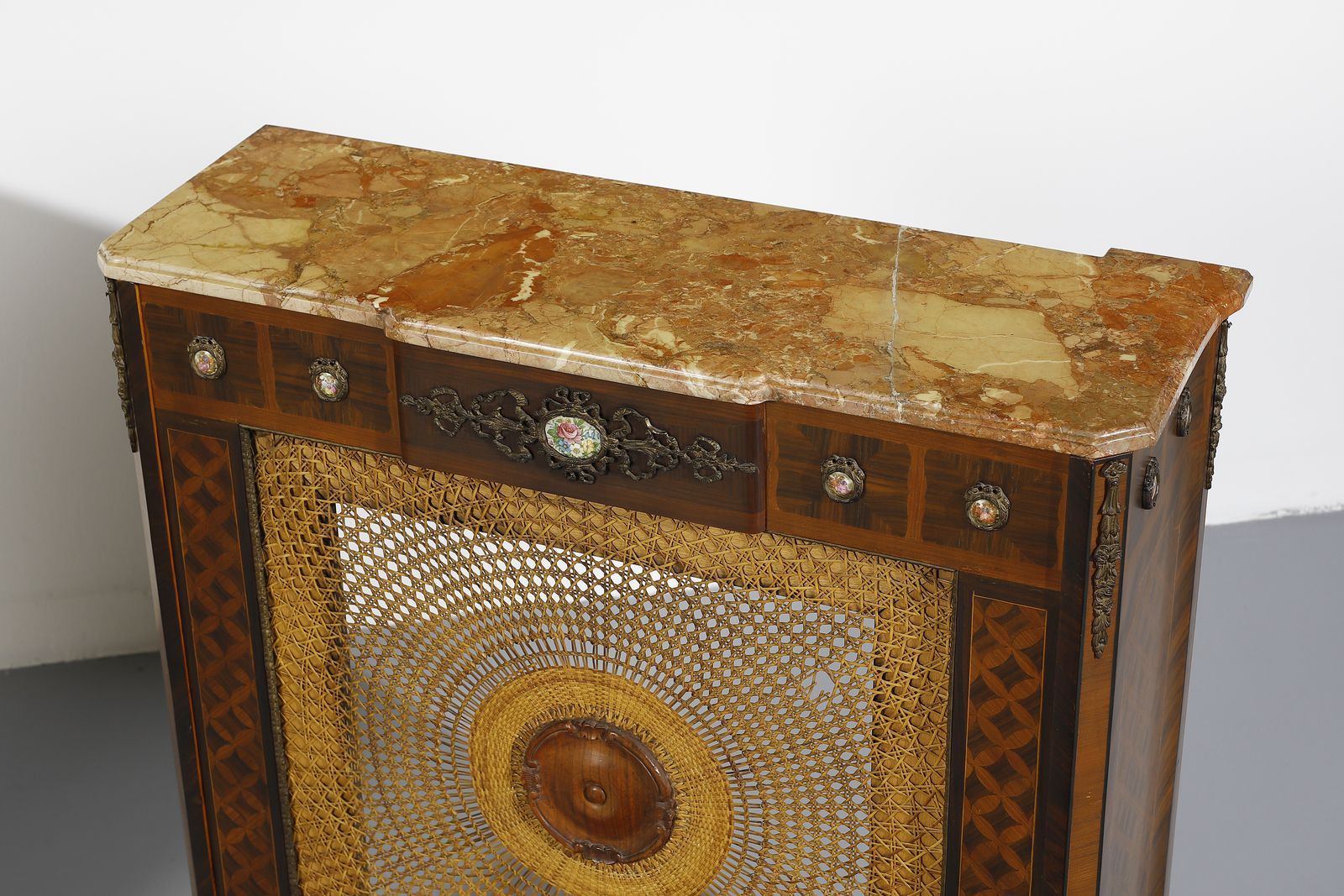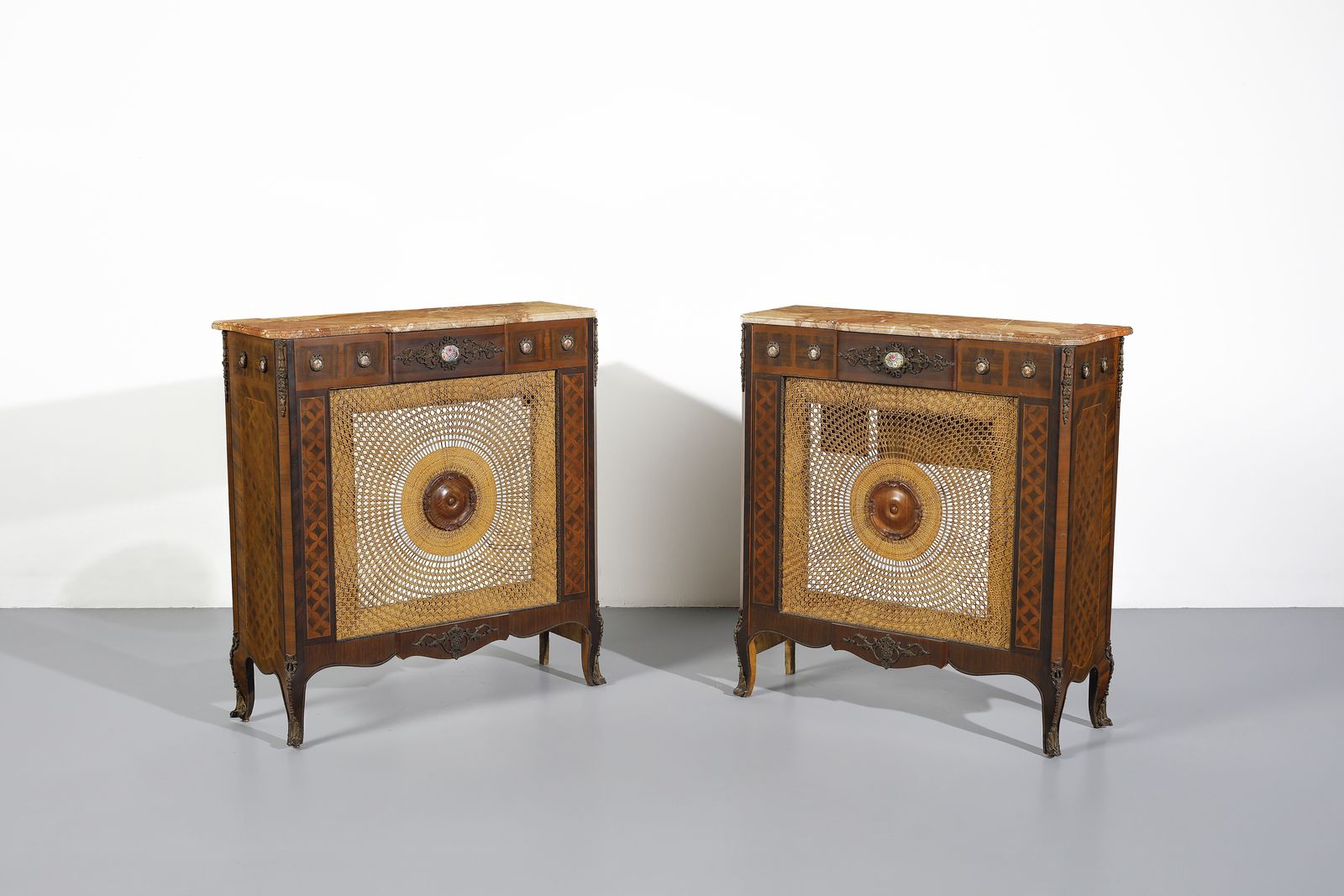Coppia di copricaloriferi in legno intarsiato e smalti in forma di cassettoni in [..]