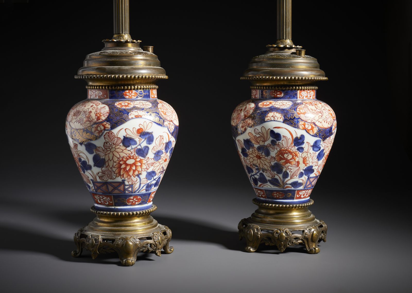 Coppia di vasi in porcellana Imari con montatura in metallo dorato adattati a la [..]