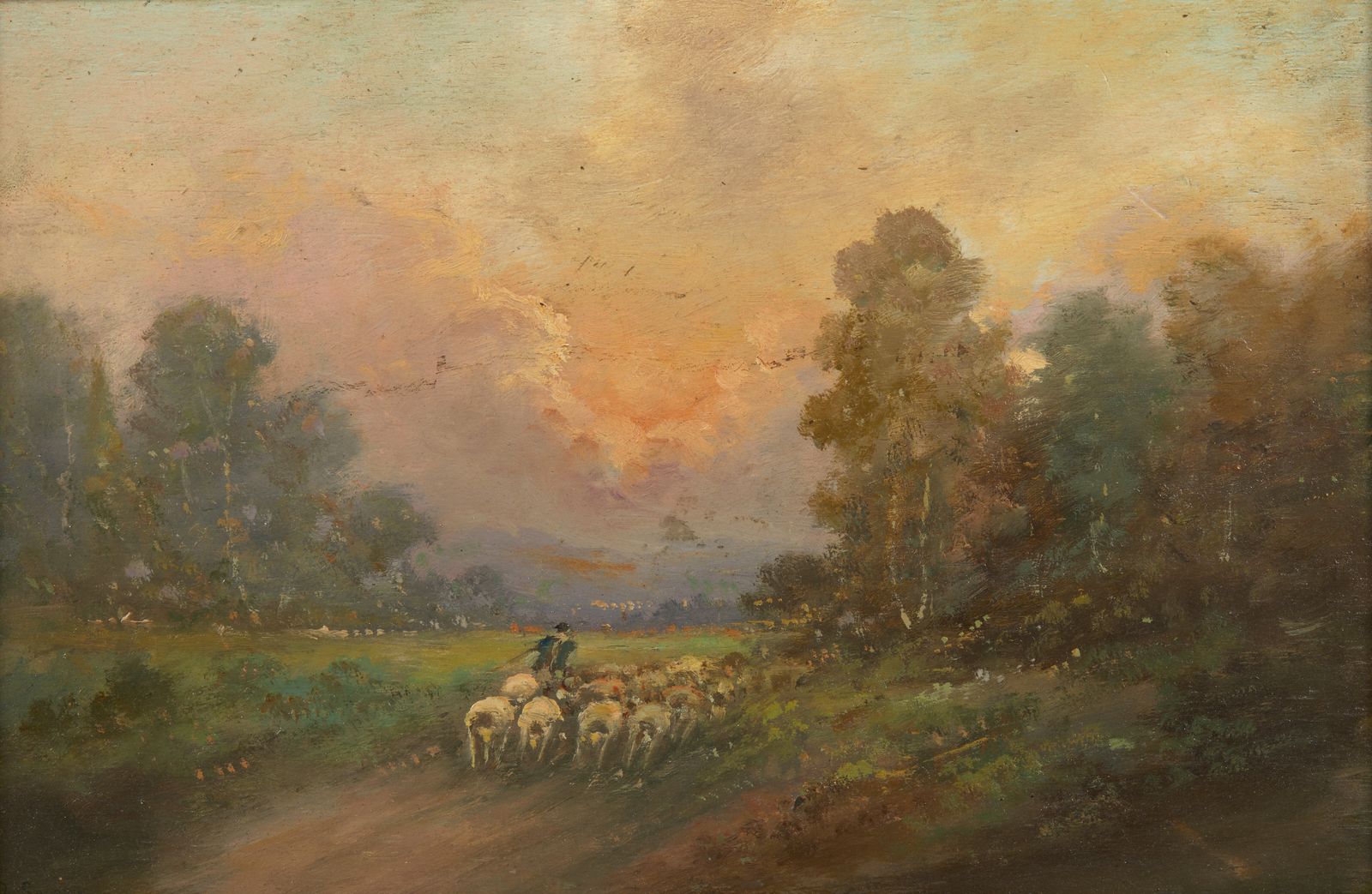 Pastore con gregge in un paesaggio