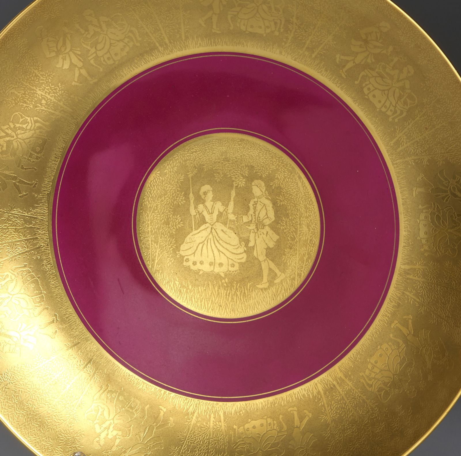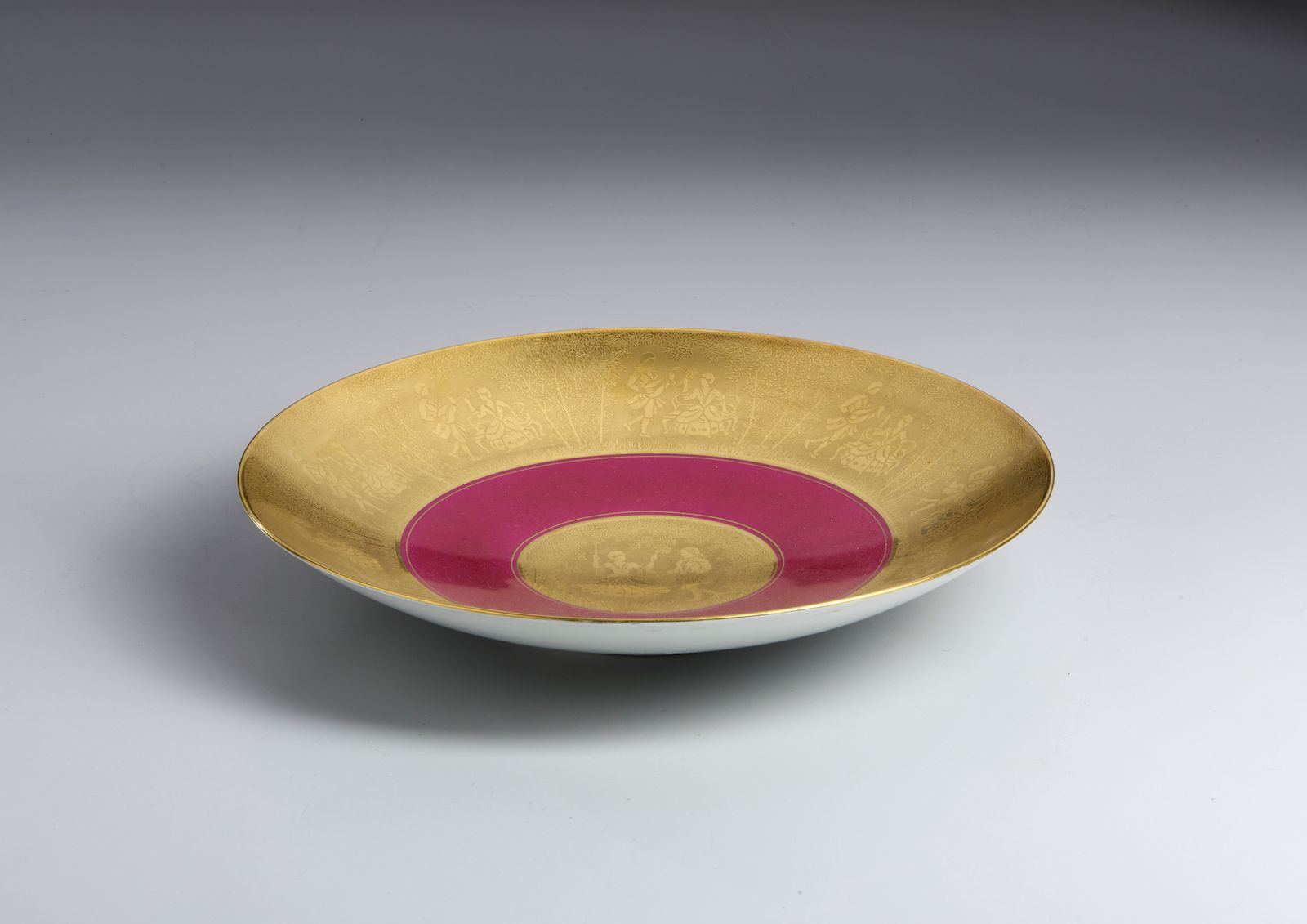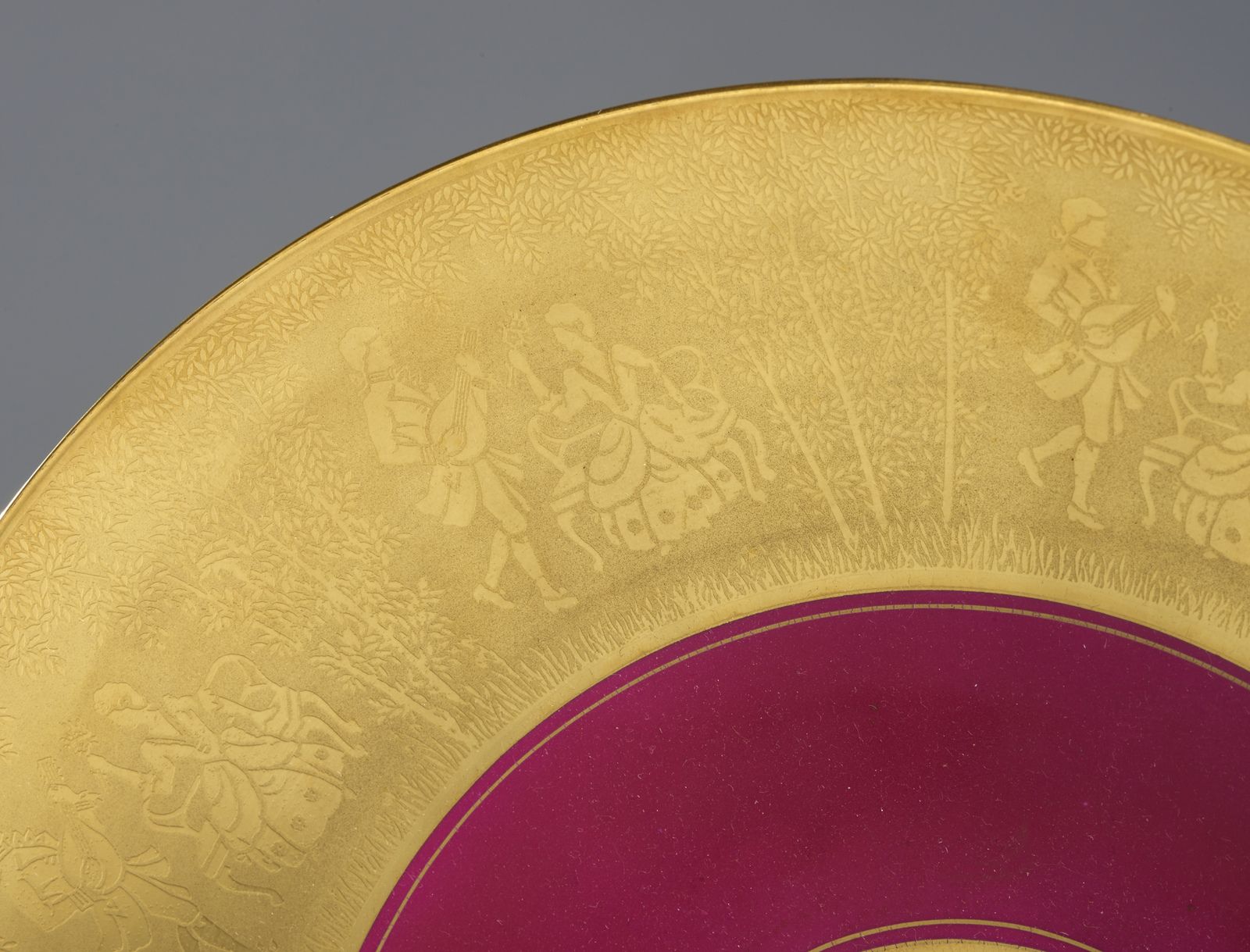 Piatto decorativo in porcellana parzialmente dorata e dipinta, con scene a rilievo [..]
